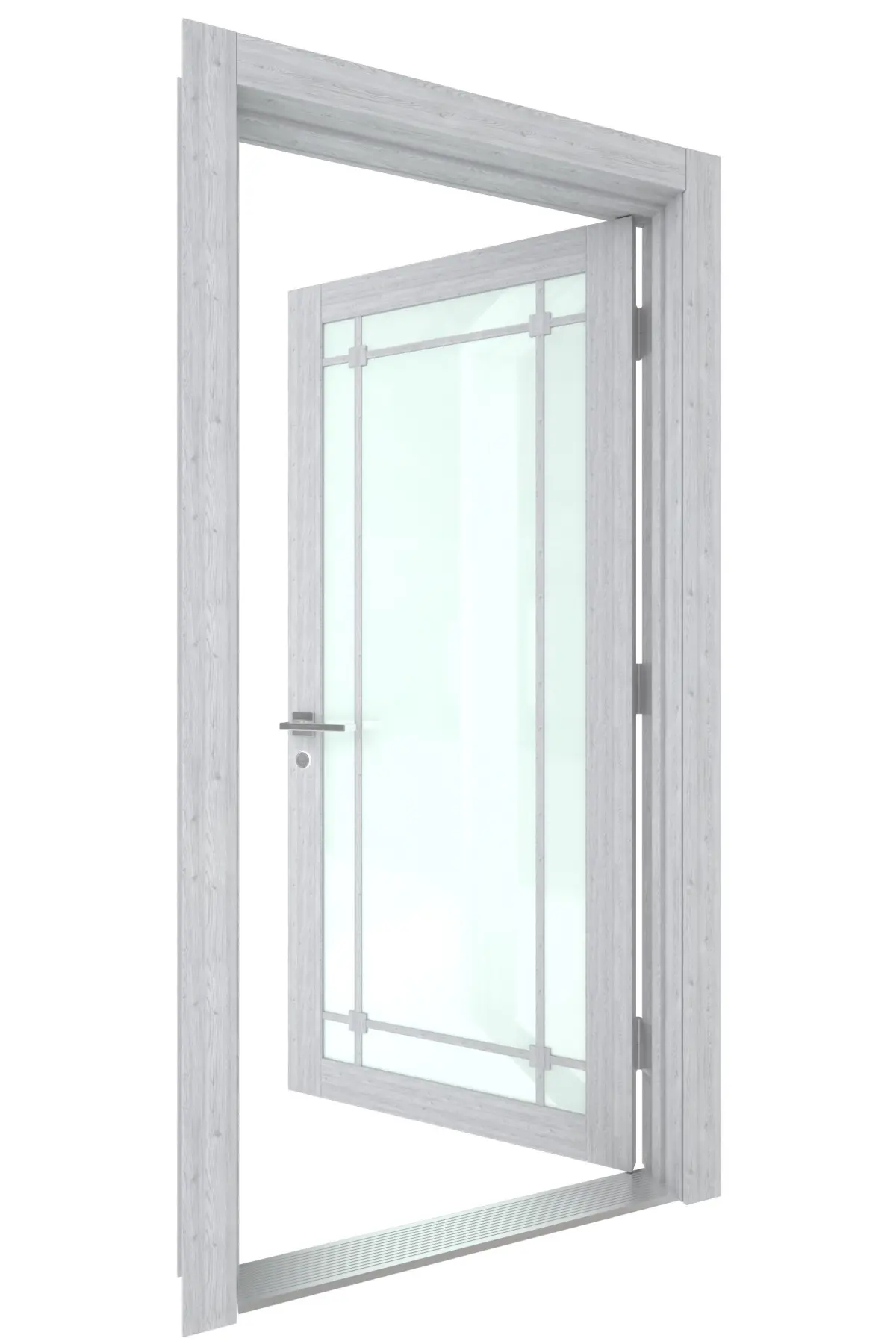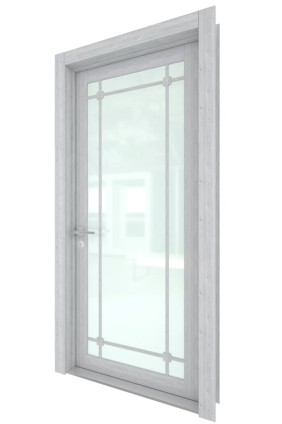 High Detail 3d Model of a modern Grey Wood Door with Frosted Glass Panel and Paneling Details