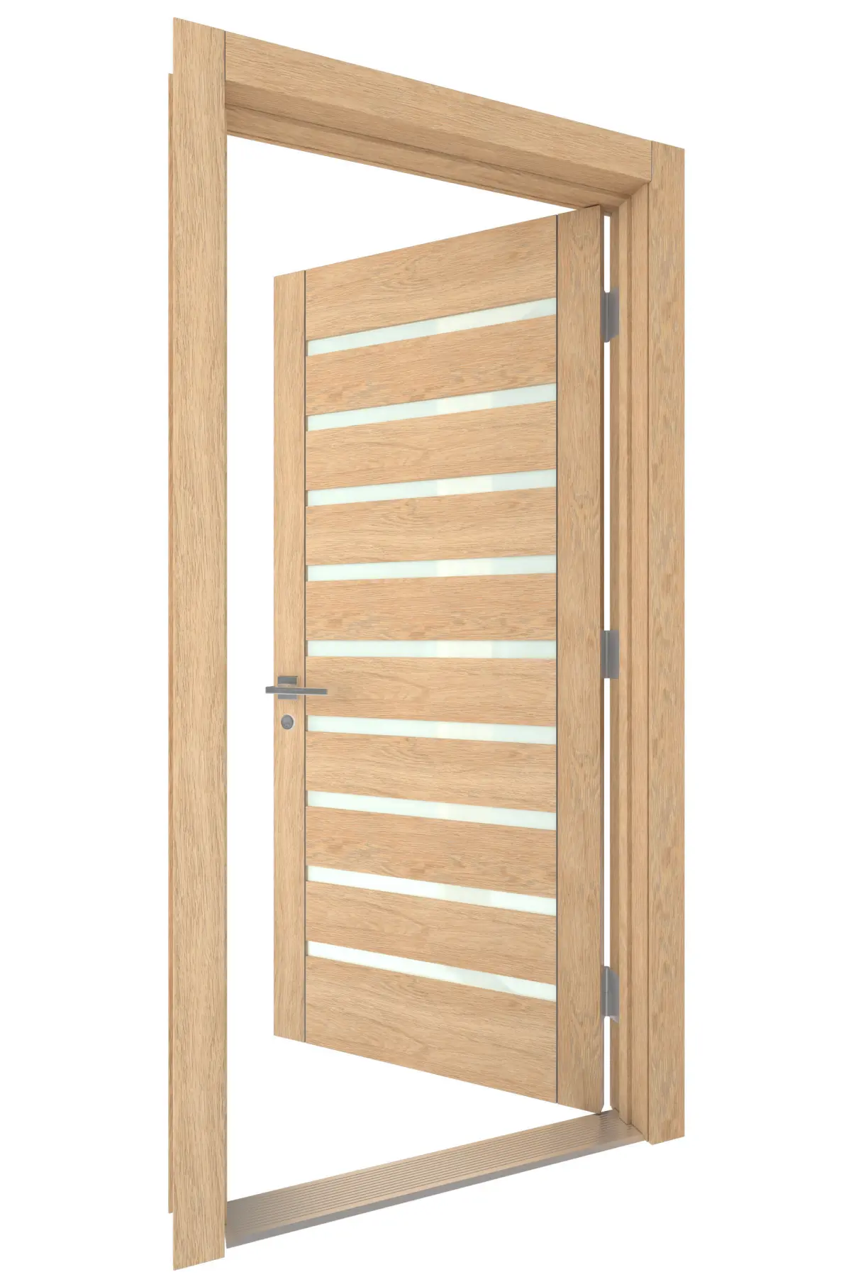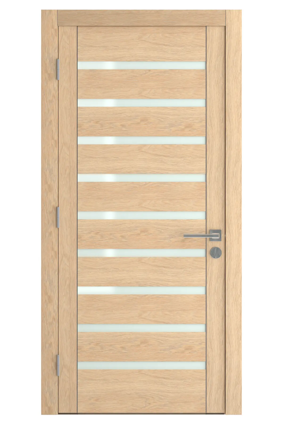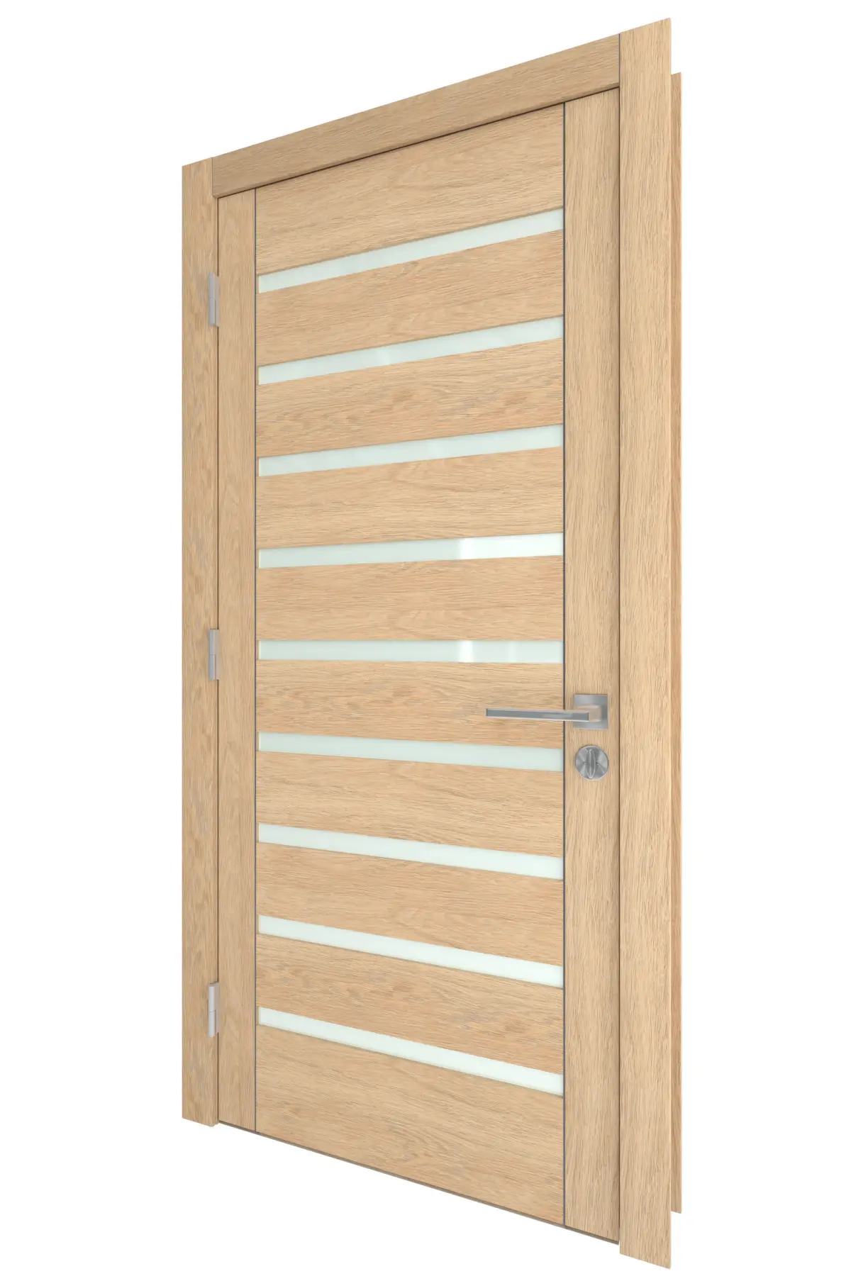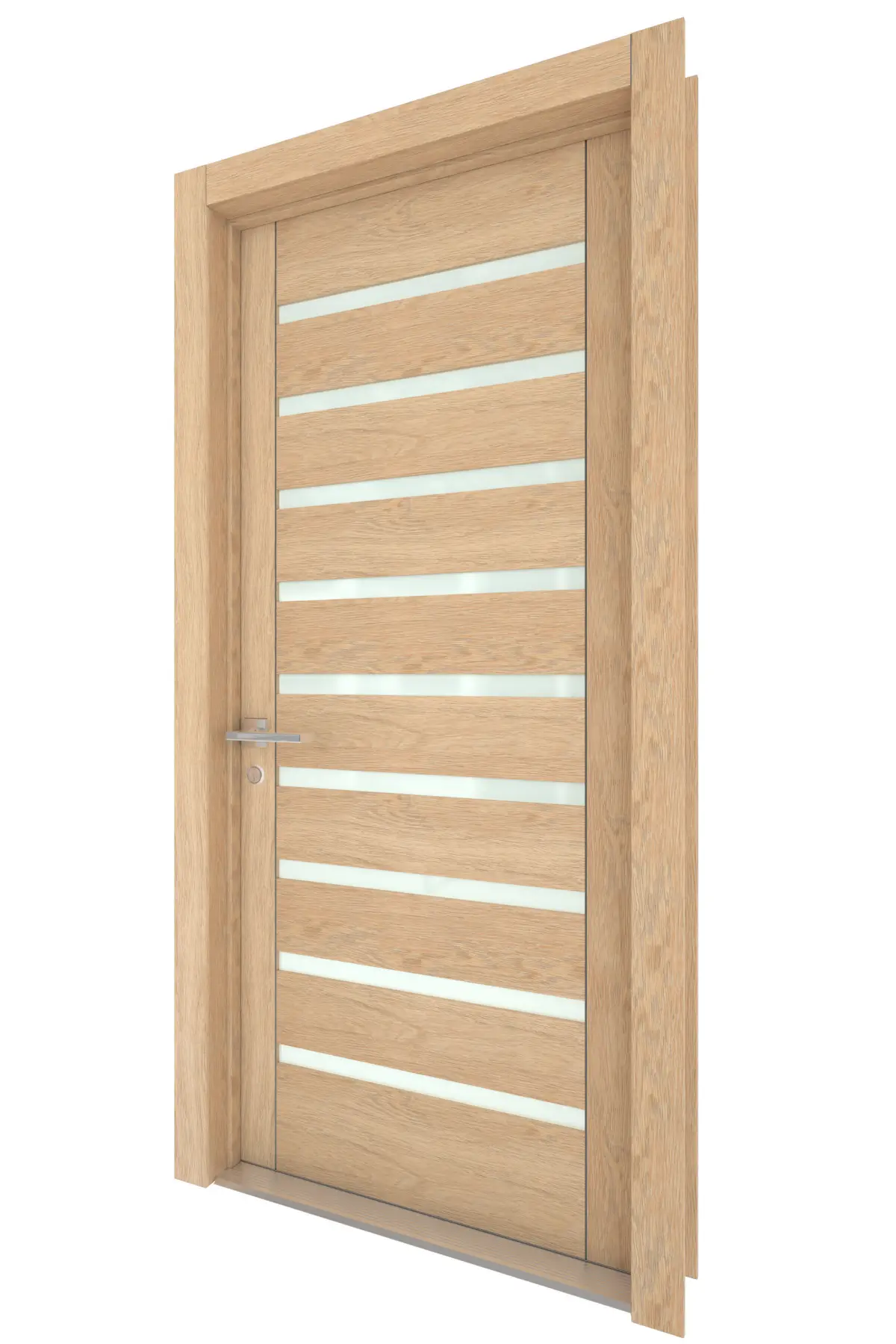 High Detail 3d Model of a modern Light Wood Door with Wood Panels and Inset Wood Panels With Small inset frosted glass.