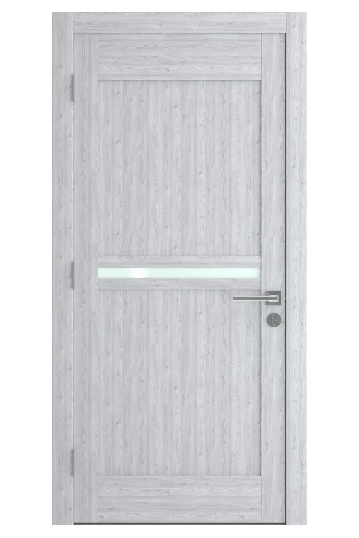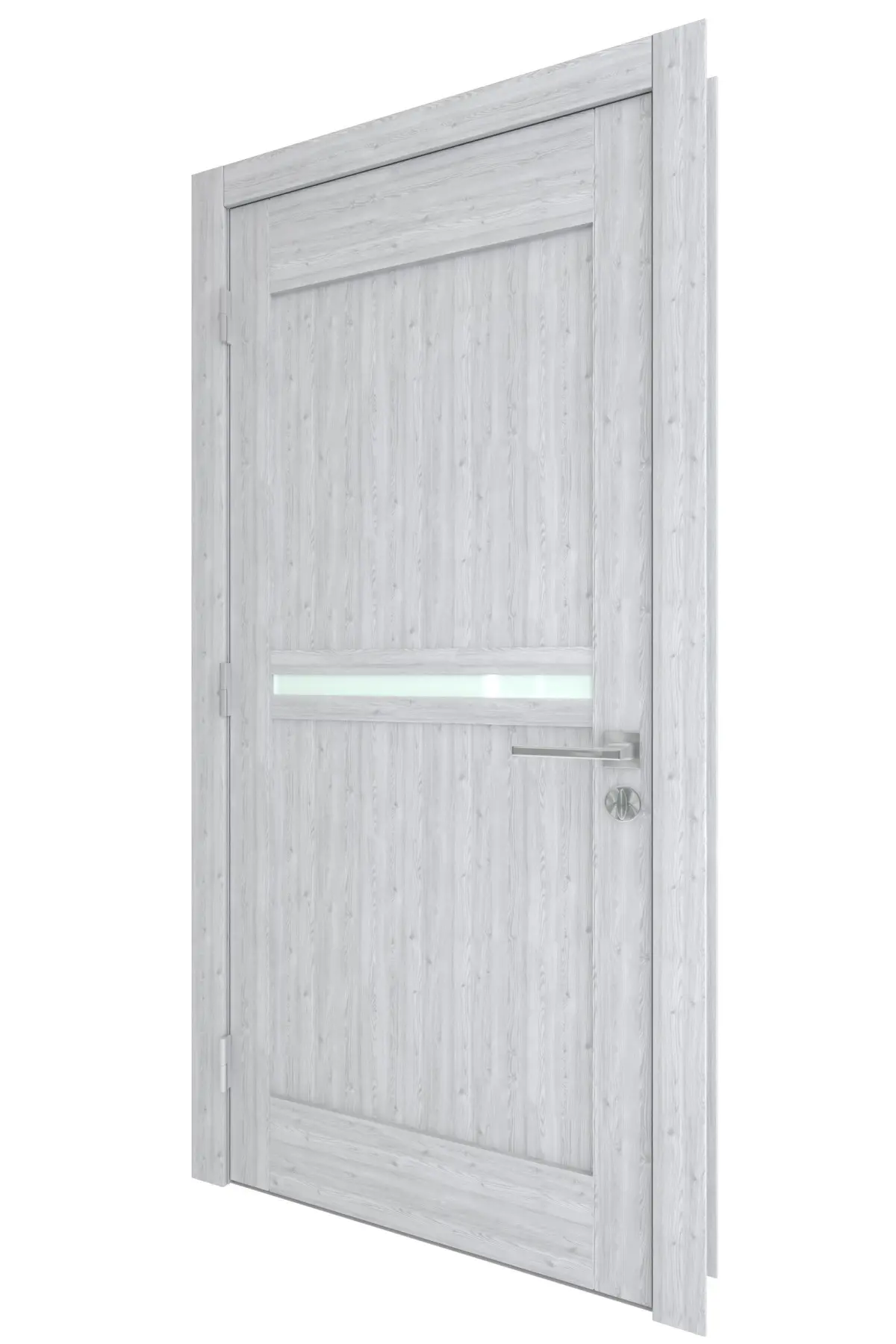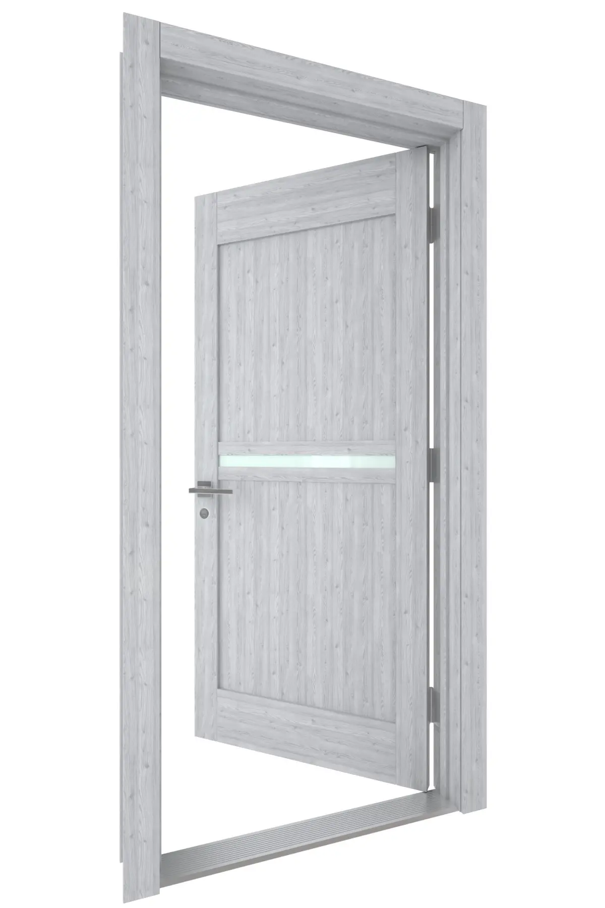 High Detail 3d Model of a modern Gray Wood Door with Wood Panels and Inset Small Wood Panels and small frosted glass lite
