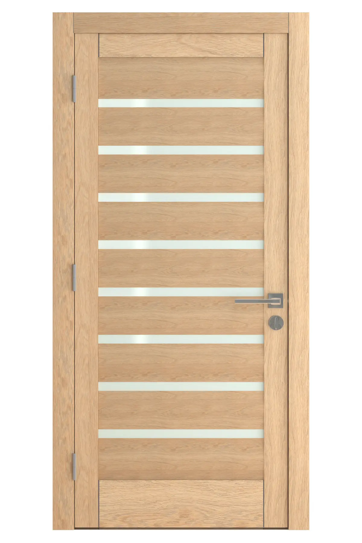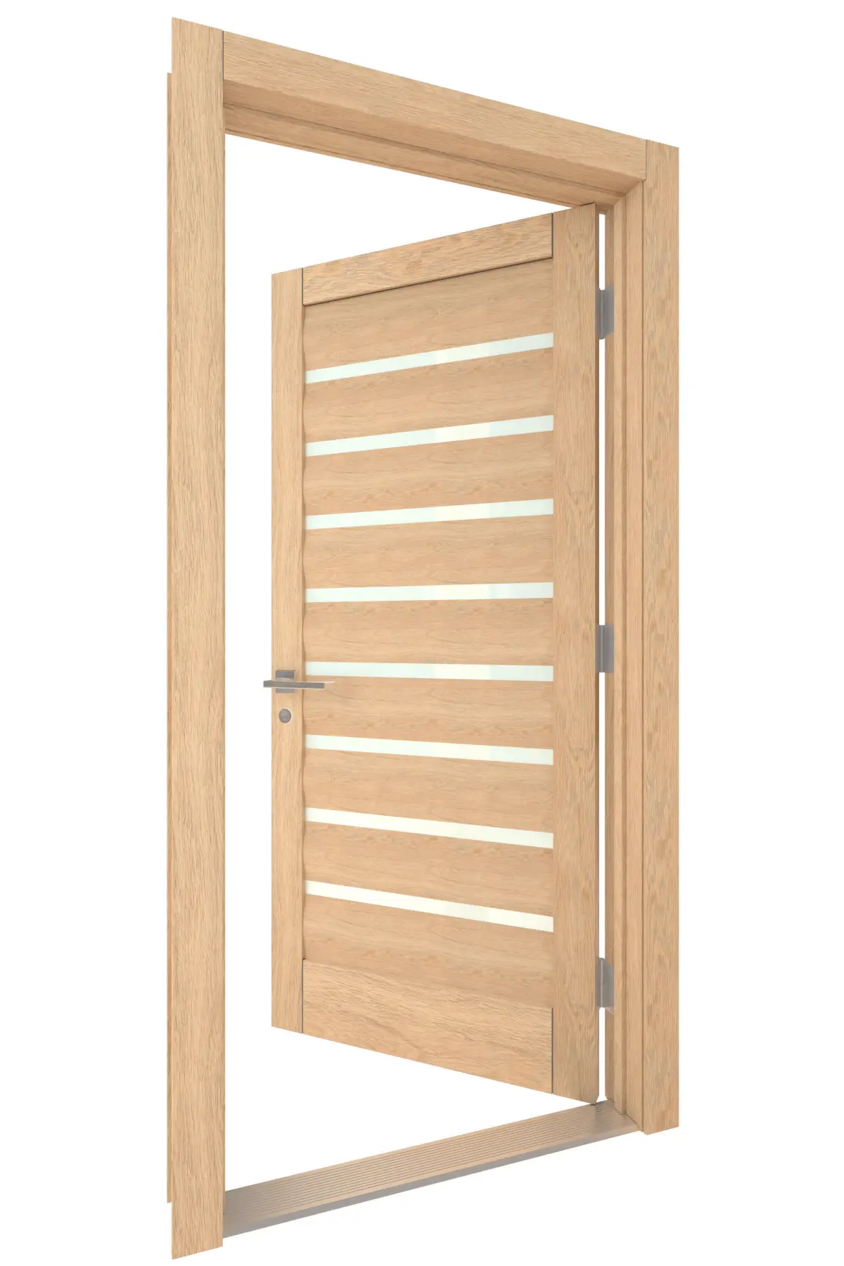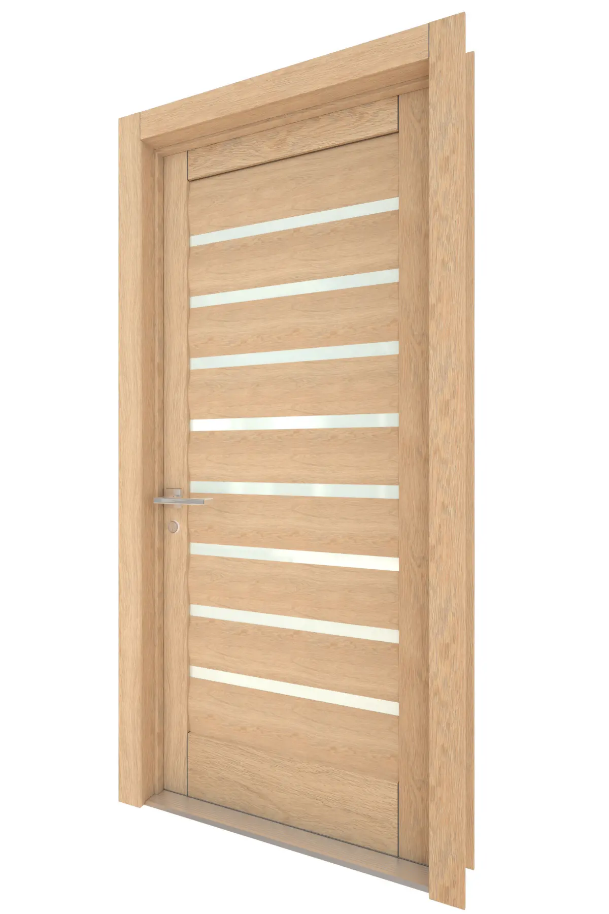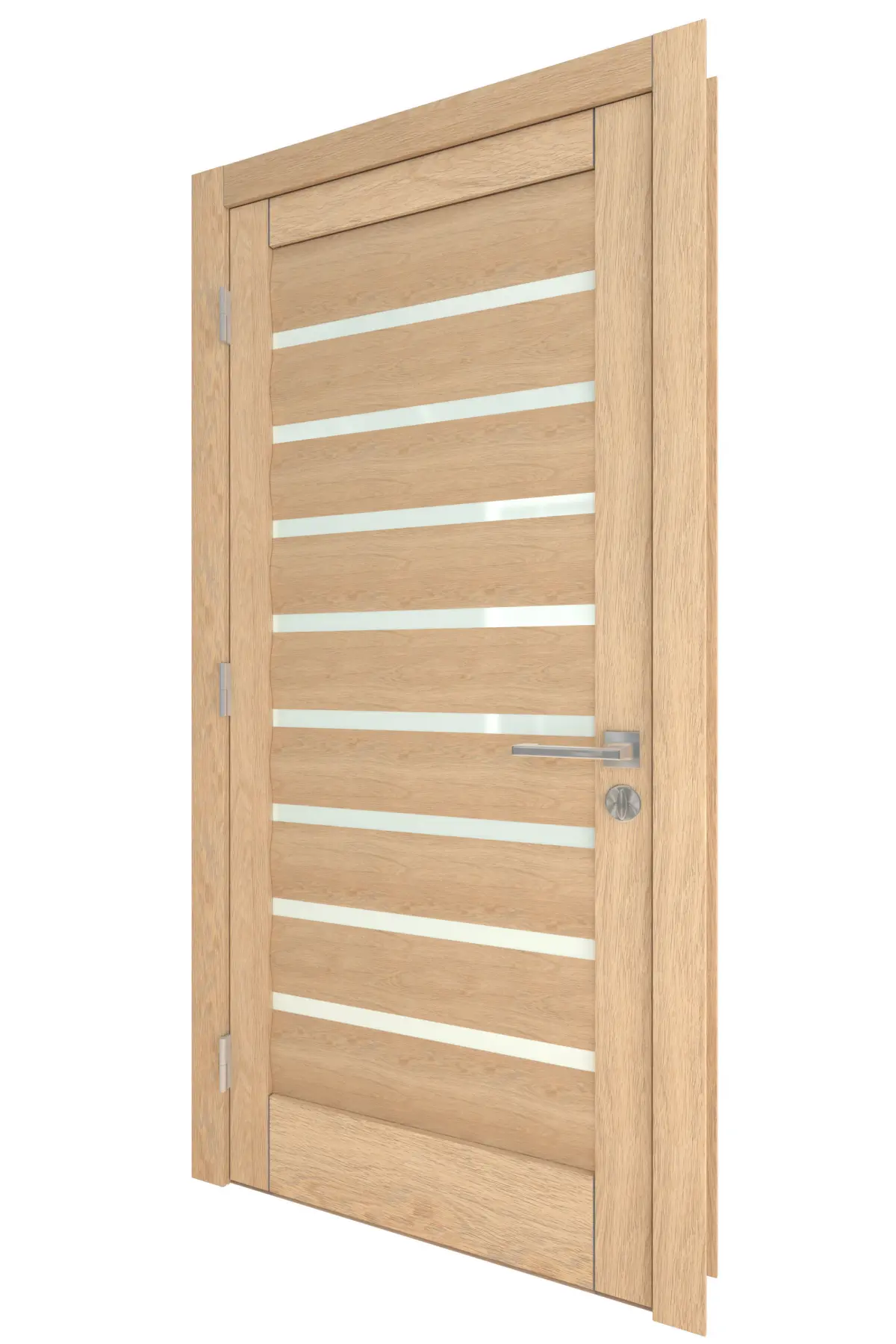 High Detail 3d Model of a modern Light Wood Door with Curved Wood center Panels With thin horizontal Glass panels- Frosted glass- Can adjust reflection and refrection to make it see through.