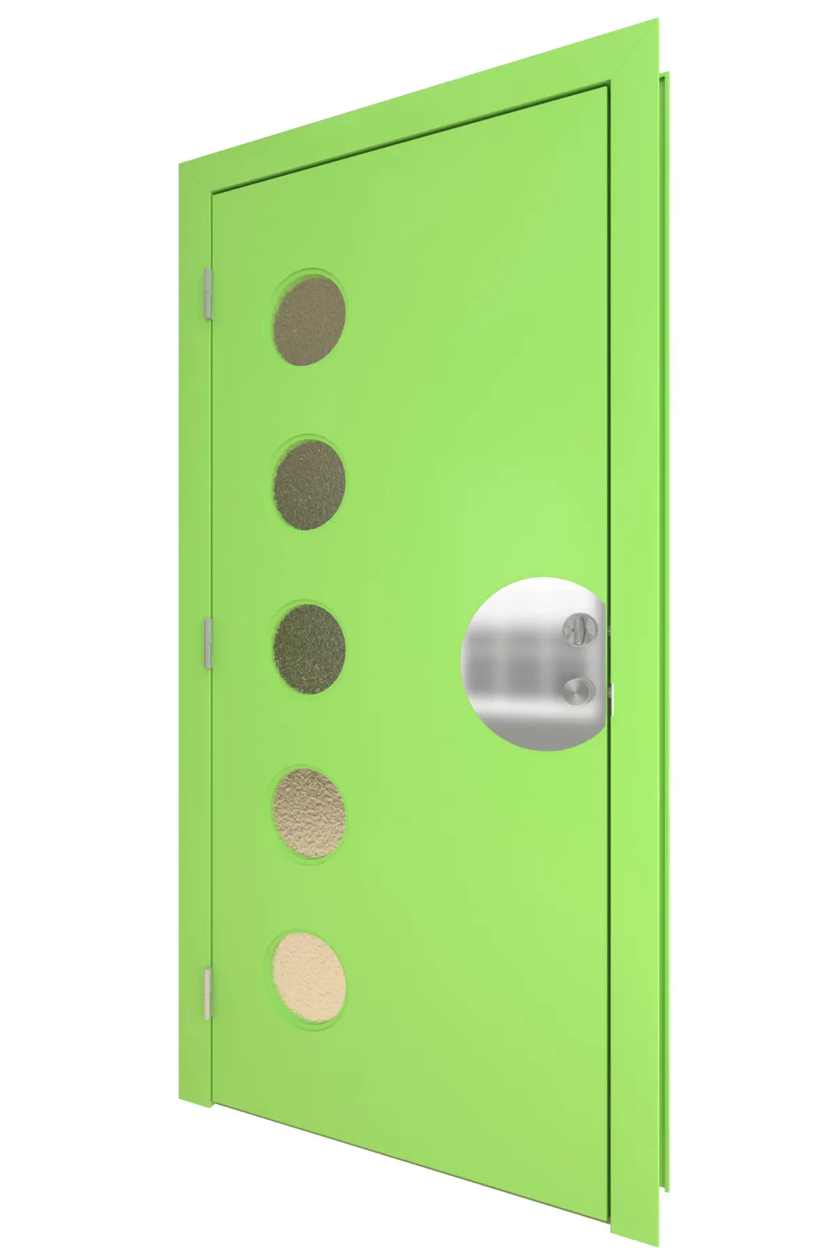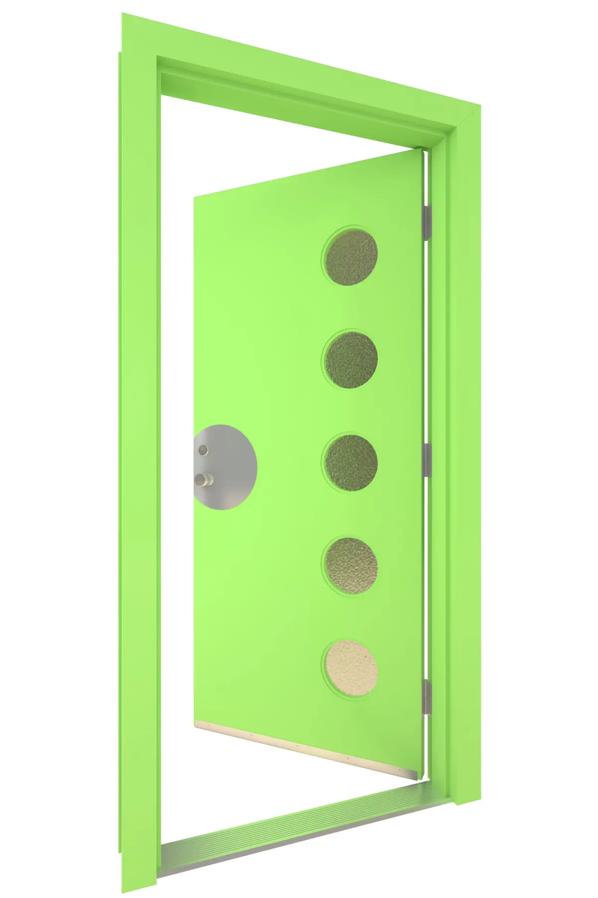 High Detail 3d Model of a modern Aluminum Green Door with Frosted Yellowish Frosted Glass