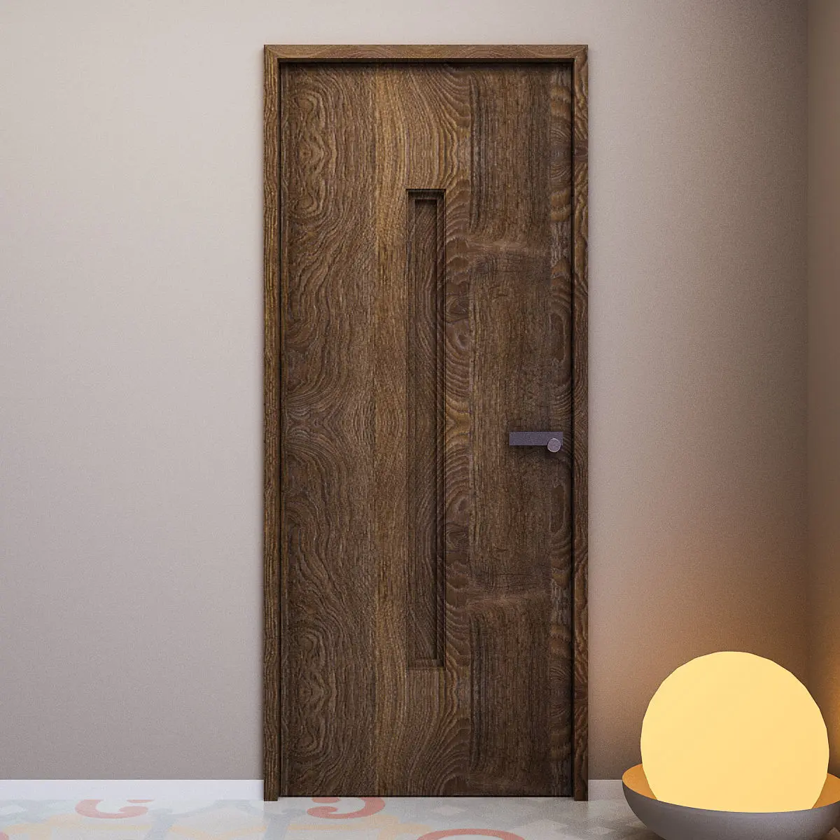 3d Model of Entrance Door. with simple designed brushed steel door handle.