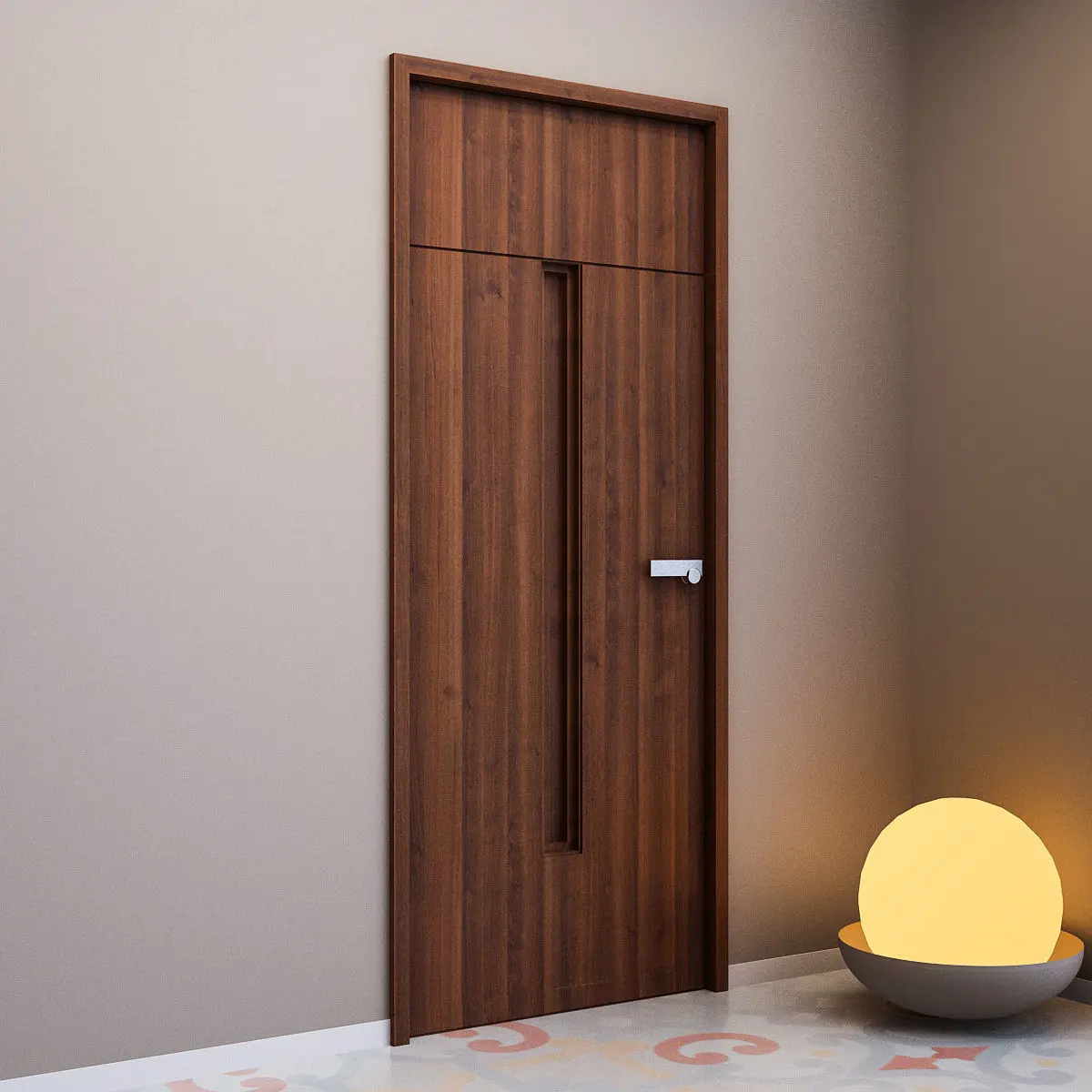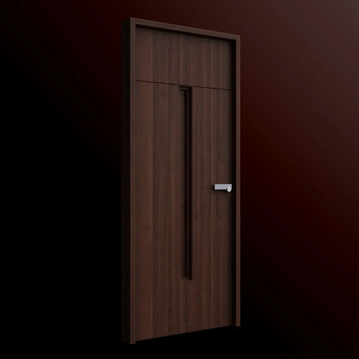 3d Model of Entrance Door. with simple designed brushed steel door handle.