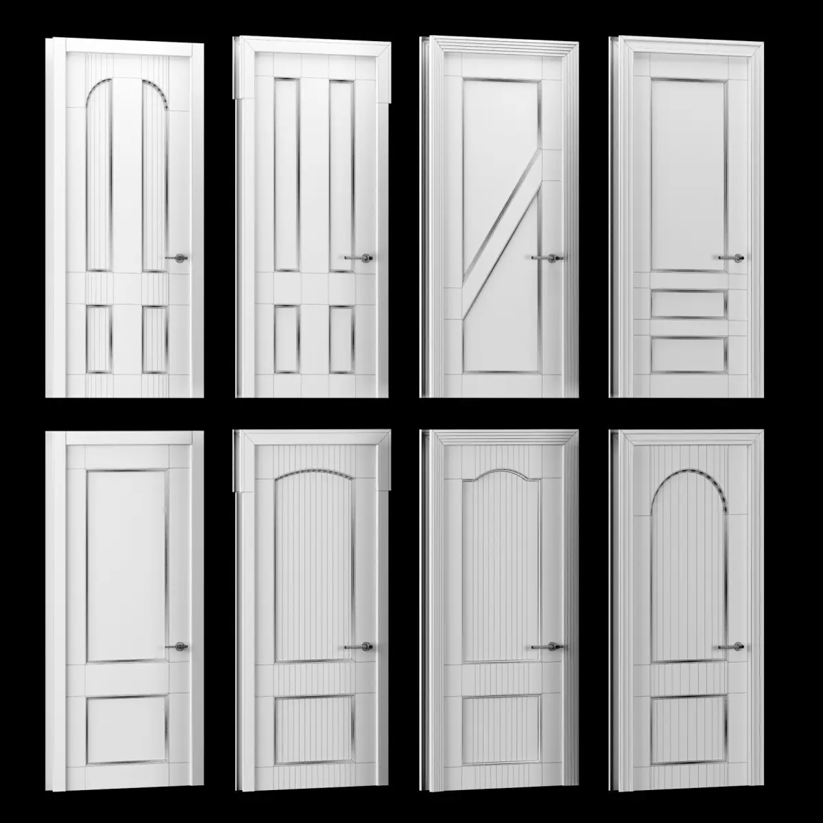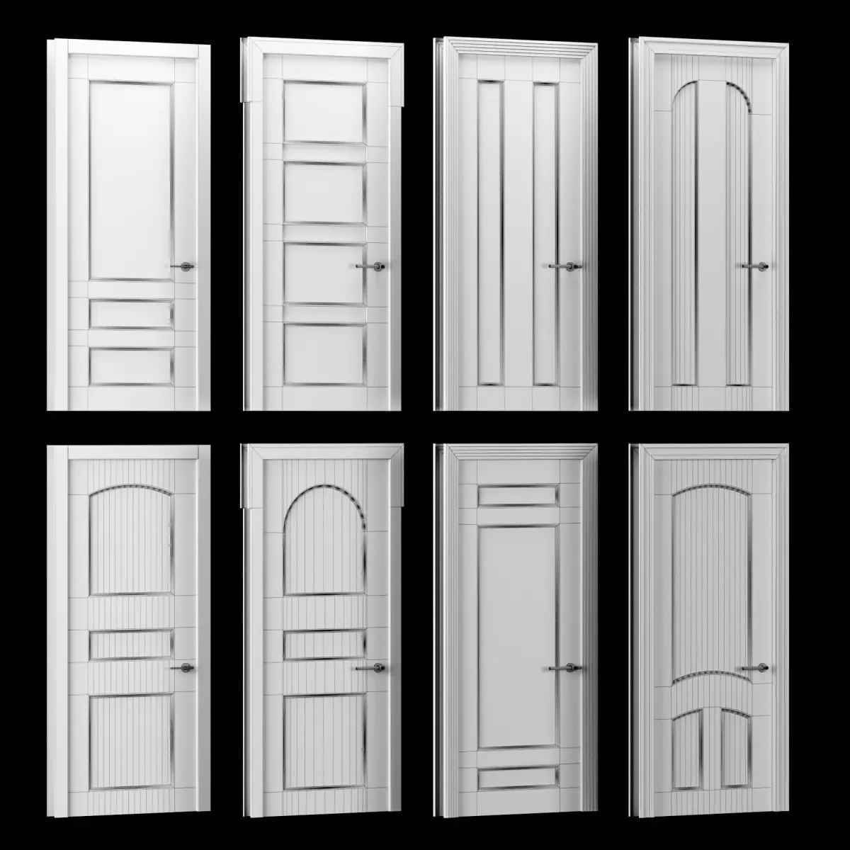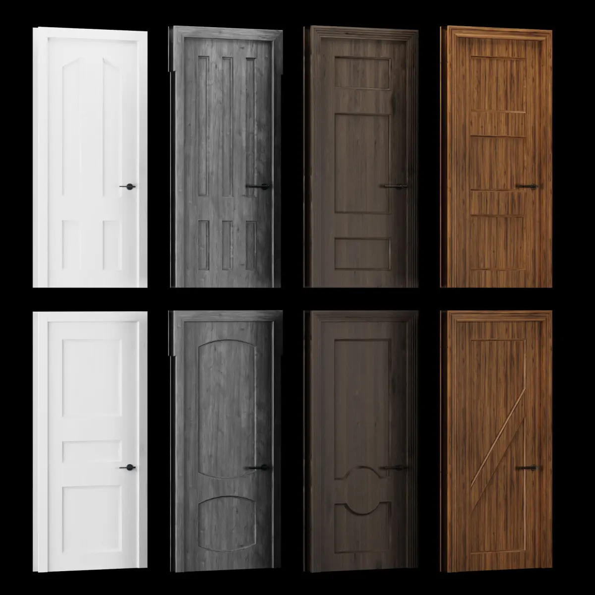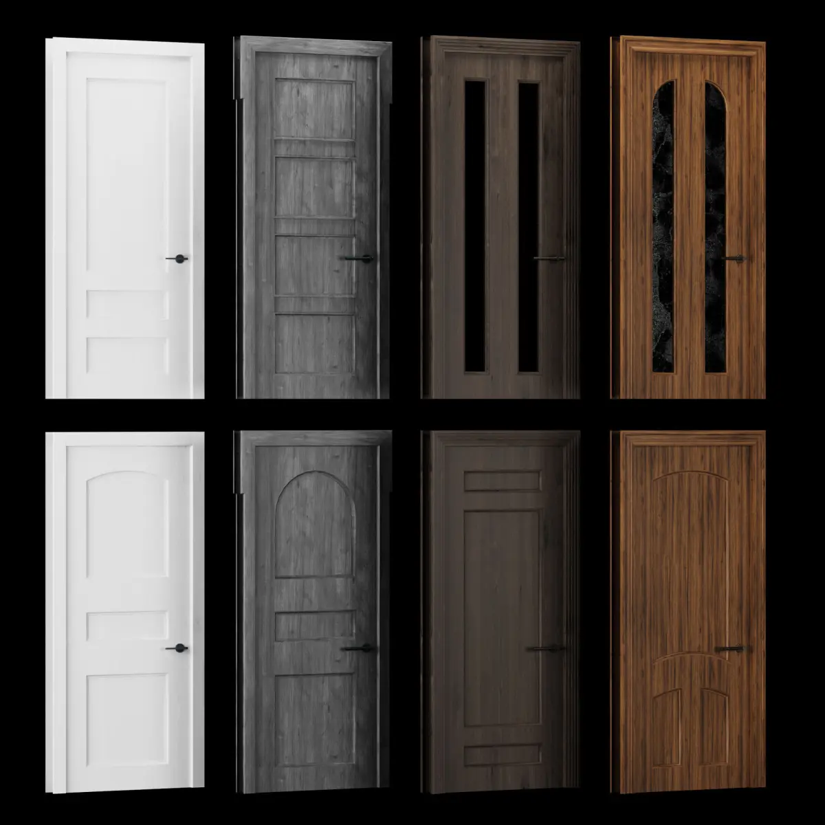 Dimension 2200x900 mm40 difernt types of doors (30 blind doors, 10 glazed doors)3 diferent types of glass material4 diferent types of wood material4 diferent types of door frame4 diferent types of door handle