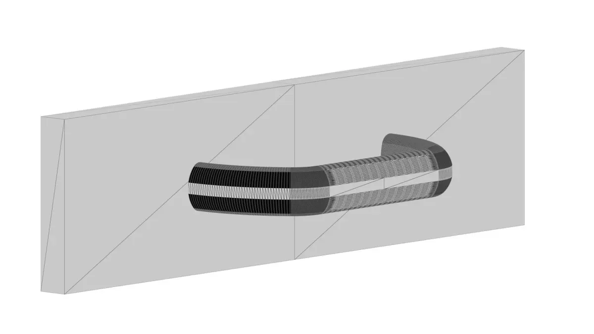Door Handle/Drawer Handle with screws and plywood sheet. 3D model of handle with NURBS data and accurate dimensions. Metal strip is attached in the groove along the handle curve. Model is made with different parts and can be disassemble.