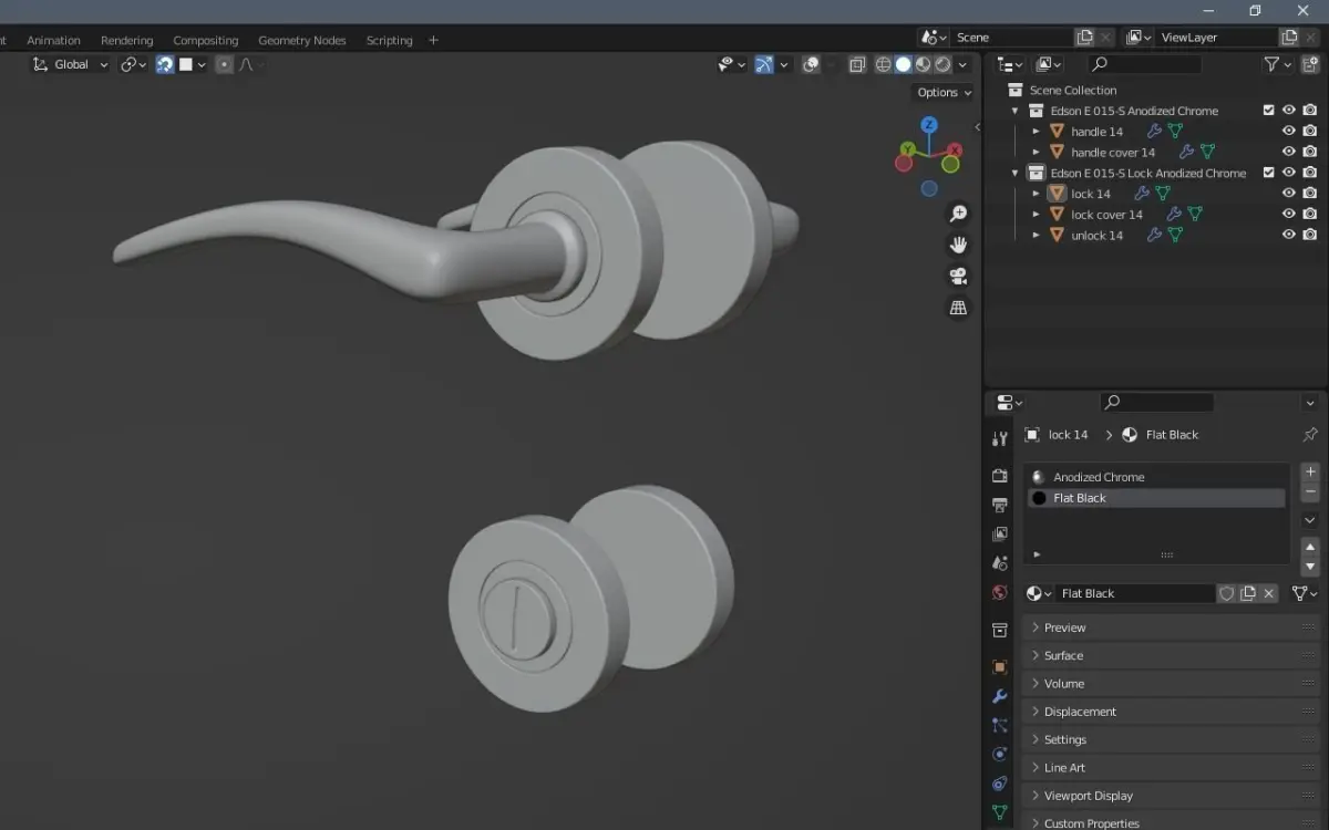 Perfect for your next ArchViz or Interior Design render, or even use one of the exchange file formats for realtime projects . Handle comes pre-spaced for doors 40mm thickness. Privacy lock is included for an optional configuration.