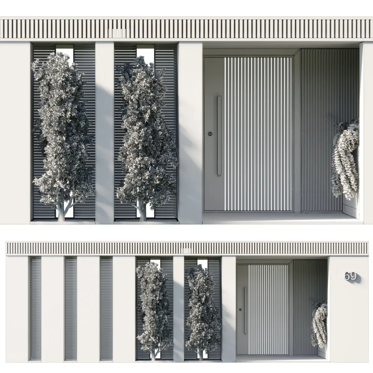 Door Outdoor entrance and fence and graden 3D model