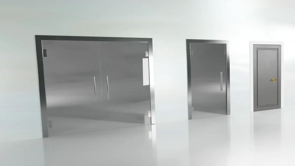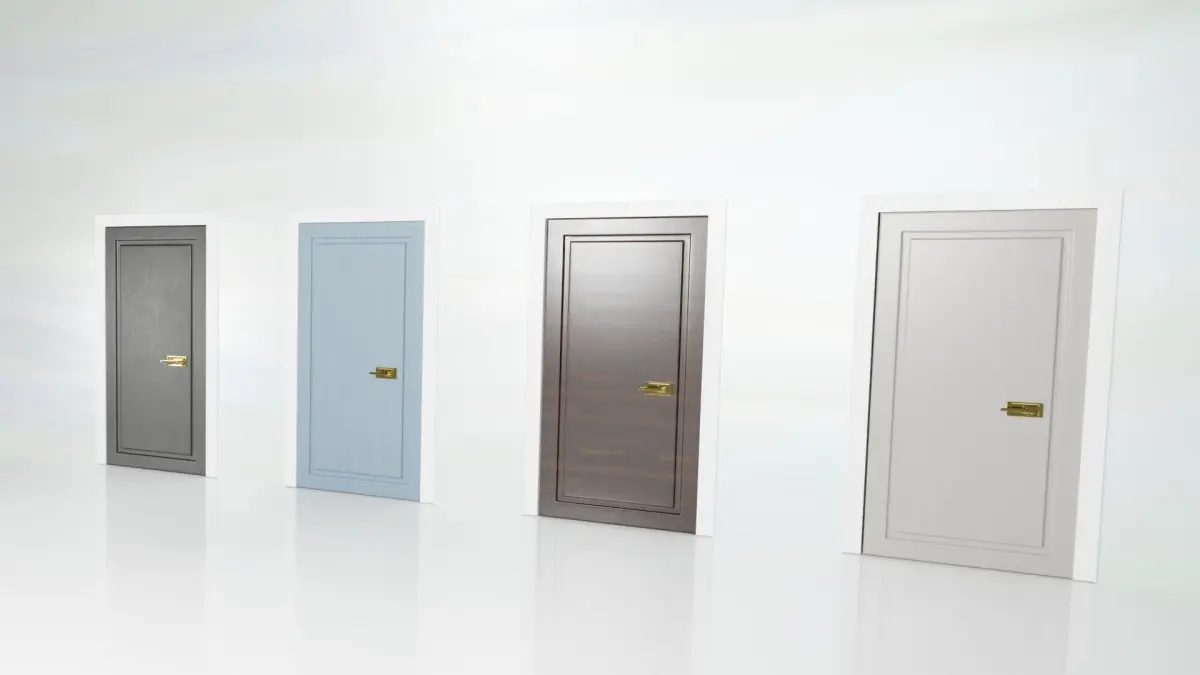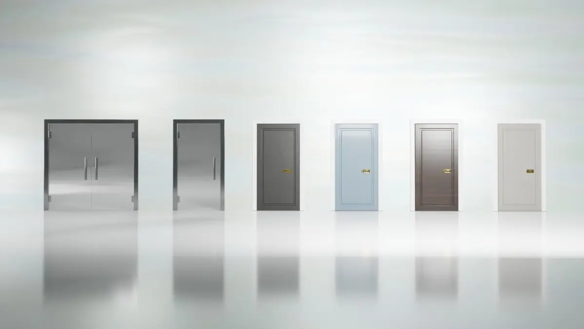 - Wood, Metal, Glass used in different doors