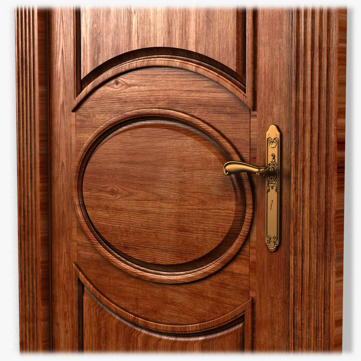 VRay versions contain the model that uses a VRay shader (based on VRayDirt) for the door.All other formats contain no materials and some of the meshes need subdividing.Wood texture included.