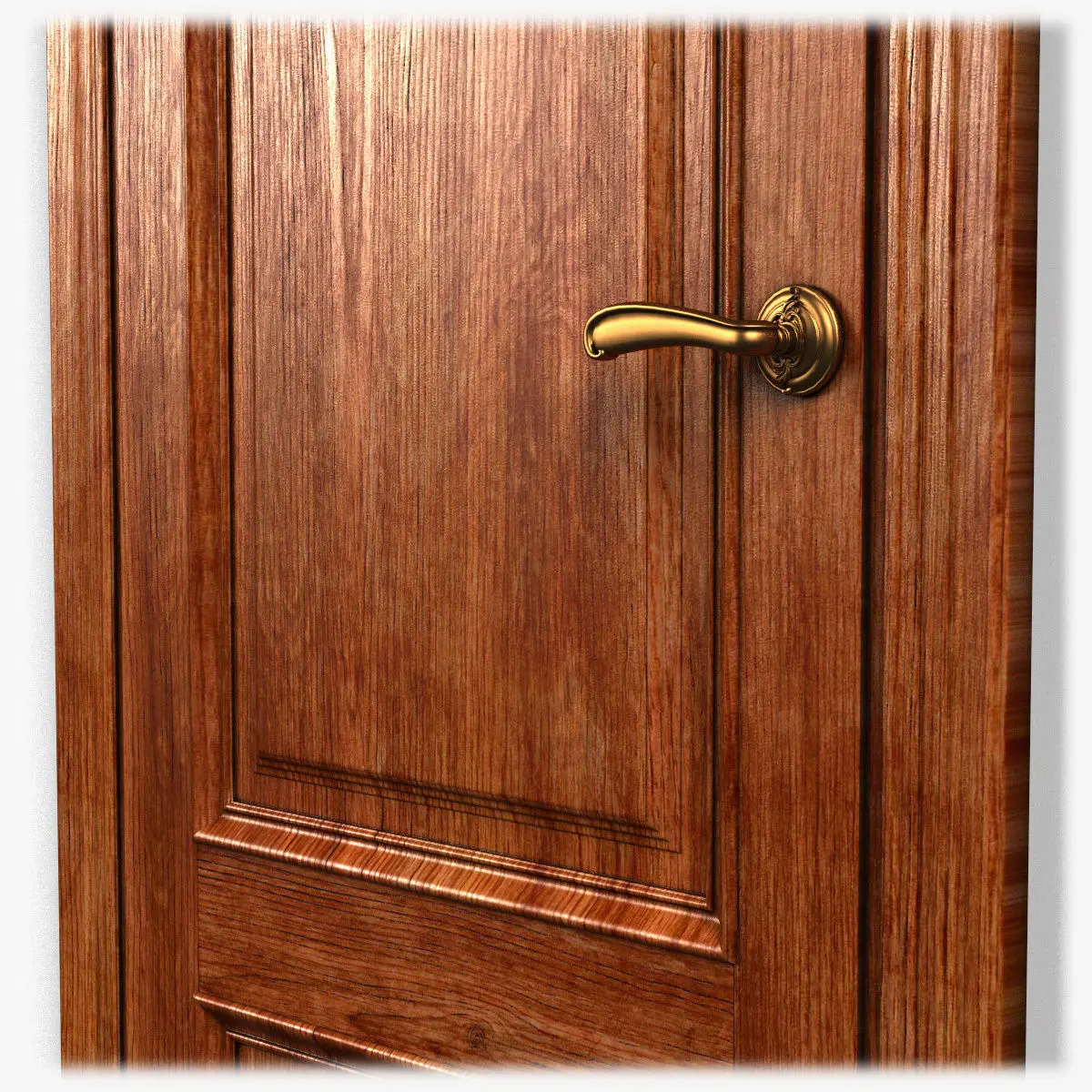 VRay versions contain the model that uses a VRay shader (based on VRayDirt) for the door.All other formats contain no materials and some of the meshes need subdividing.Wood texture included.