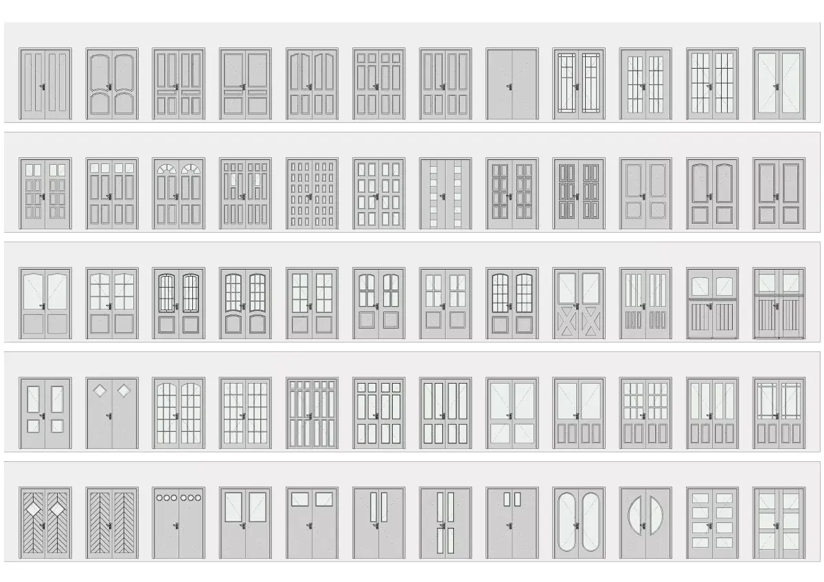 The doors are all diferent with detailed leafs and framed.