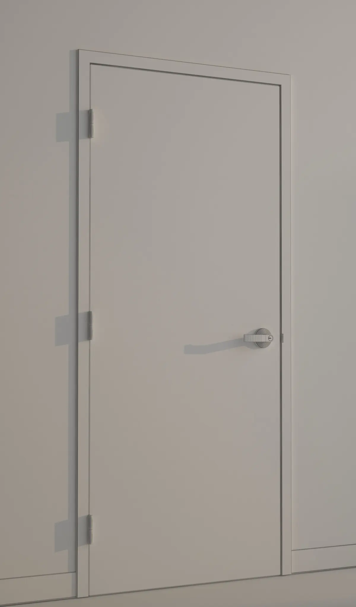 Model includes- Doors, hinges, strike plates, door lever. Frames for Louvers and Glass are flush with the door (inboard)