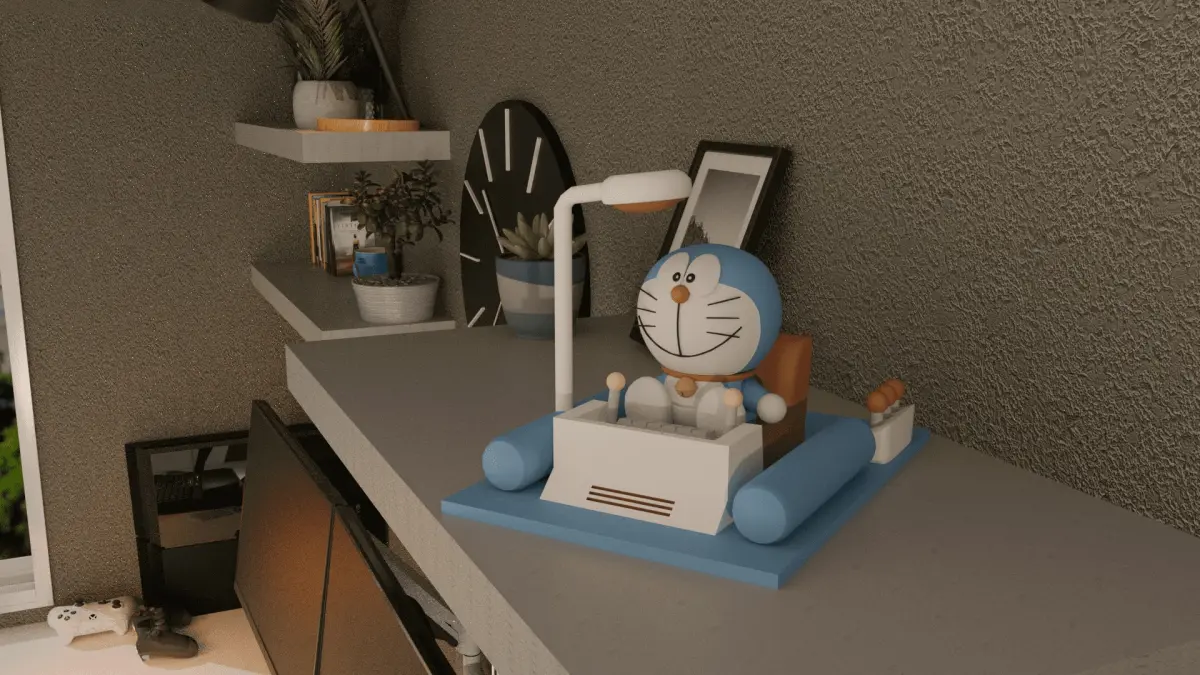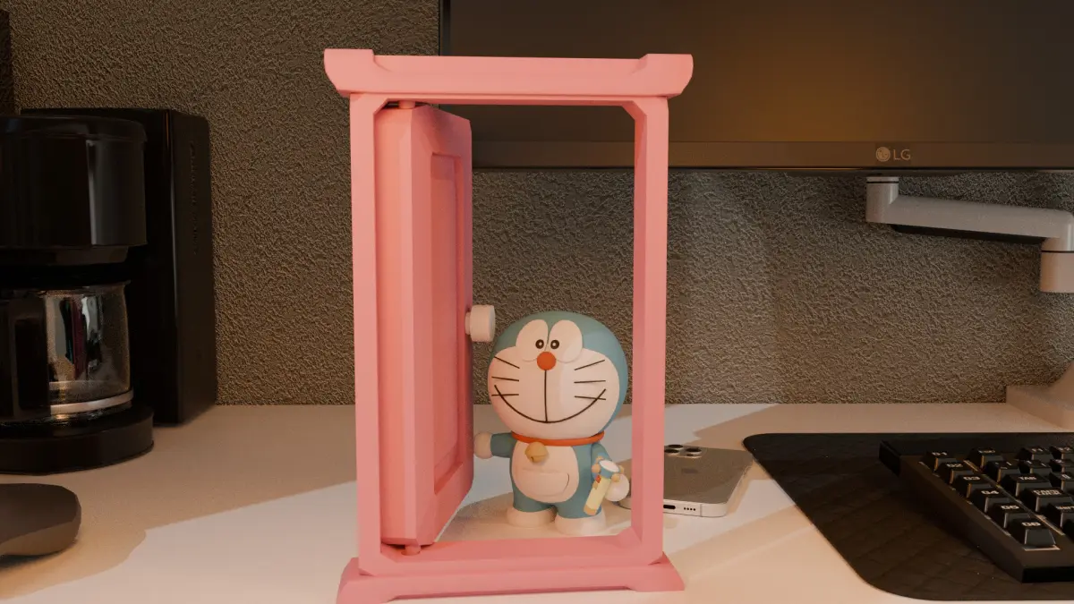 ¡Figura de Doraemon con accesorios! La puerta mágica, el gorrocóptero, la máquina del tiempo, la linterna minimizadora y maximizadora.Puerta articulada, linternas y gorrocóptero equipables.