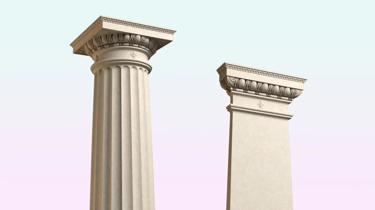 The order is constructed according to the module, adhering to all the rules and proportions of classical architecture. The column includes meticulously crafted entasis.