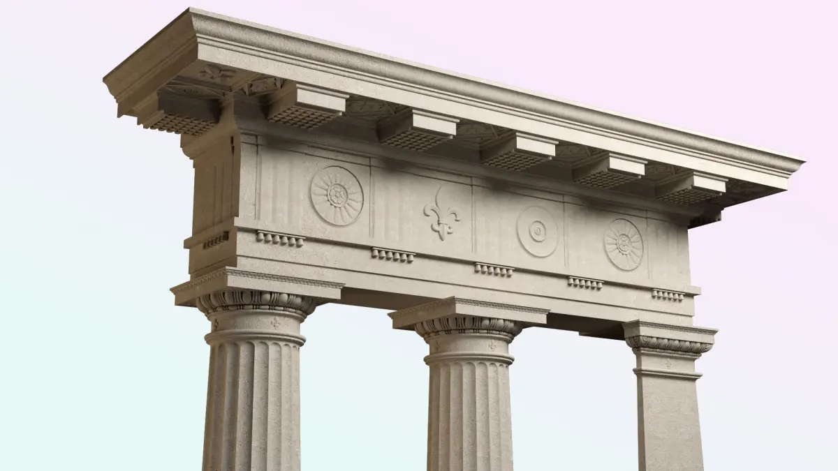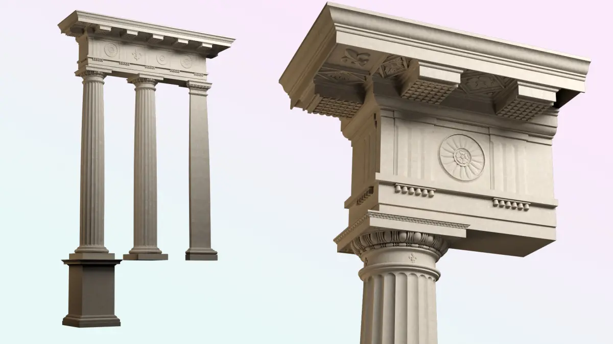 Fully detailed Doric mutulary column with pedestal and entablature Doric Order on Vignola. Fluting Column