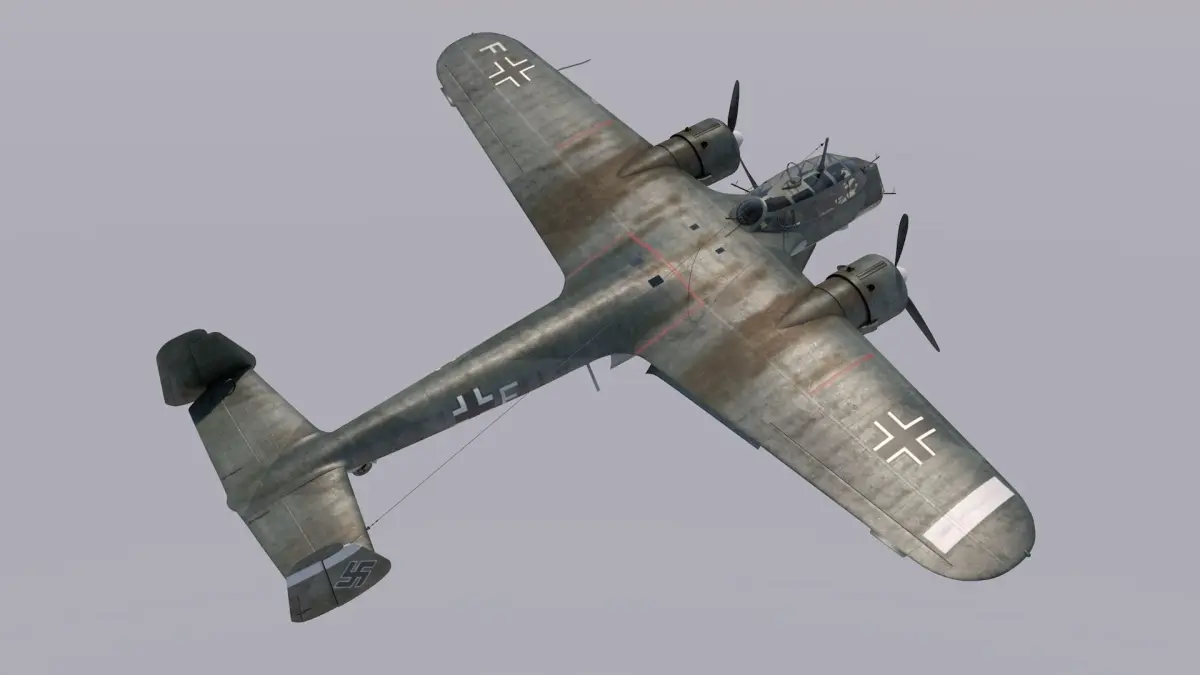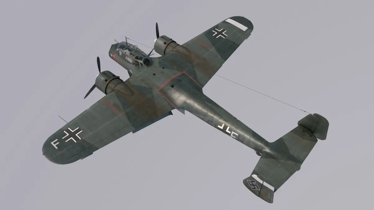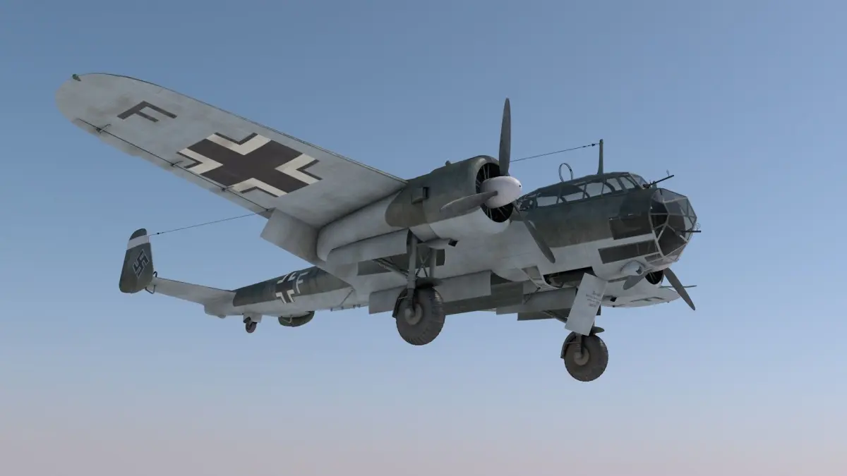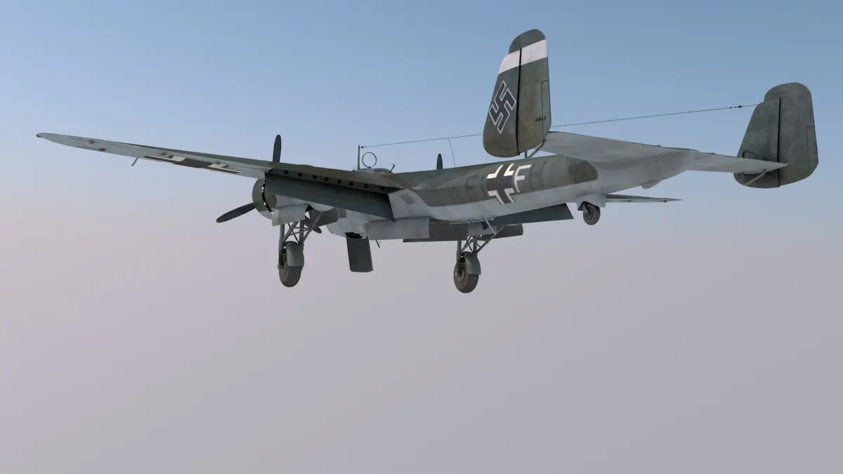 The Dornier Do 17, sometimes referred to as the Fliegender Bleistift (flying pencil), is a light bomber of Nazi Germany during World War II. It was produced by Claudius Dornier's company, Dornier Flugzeugwerke. The aircraft was designed as a Schnellbomber (fast bomber), a light bomber which, in theory, would be so fast that it could outrun defending fighter aircraft. The Dornier was designed with two engines mounted on a shoulder wing structure and possessed a twin tail fin configuration. The type was popular among its crews due to its handling, especially at low altitude, which made the Do 17 harder to hit than other German bombers. Designed in the early 1930s, it was one of the three main Luftwaffe bomber types used in the first three years of the war. The Do 17 made its combat debut in 1937 during the Spanish Civil War, operating in the Condor Legion in various roles. Along with the Heinkel He 111 it was the main bomber type of the German air arm in 1939–1940. The Dornier was used throughout the early war, and saw action in significant numbers in every major campaign theatre as a front line aircraft until the end of 1941, when its effectiveness and usage was curtailed as its bomb load and range were limited. High poly, high detailed 3D model with separate control surfaces, full interior, bomb load and landing gear.