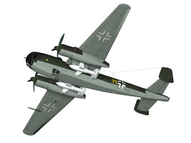 A twin-engine bomber operated by the Luftwaffe during World War II.The landing gear is divided into an open part and a closed part.The expression in the cockpit is simple.FritzX is a set.Created with Lightwave3D.The number of polygons in 3ds is 360934.This model is not designed to be used with low polygons, such as in games.Please be careful when purchasing.This model is not designed for 3D printing.Please be careful when purchasing.