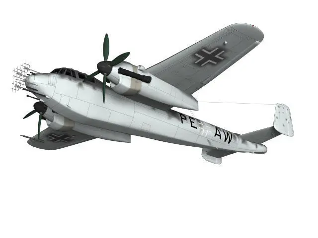 A night fighter developed from the Dornier Do 217.The landing gear is divided into an open part and a closed part.The expression in the cockpit is simple.Created with Lightwave3D.The number of polygons in 3ds is 230996.This model is not designed to be used with low polygons, such as in games.Please be careful when purchasing.This model is not designed for 3D printing.Please be careful when purchasing.