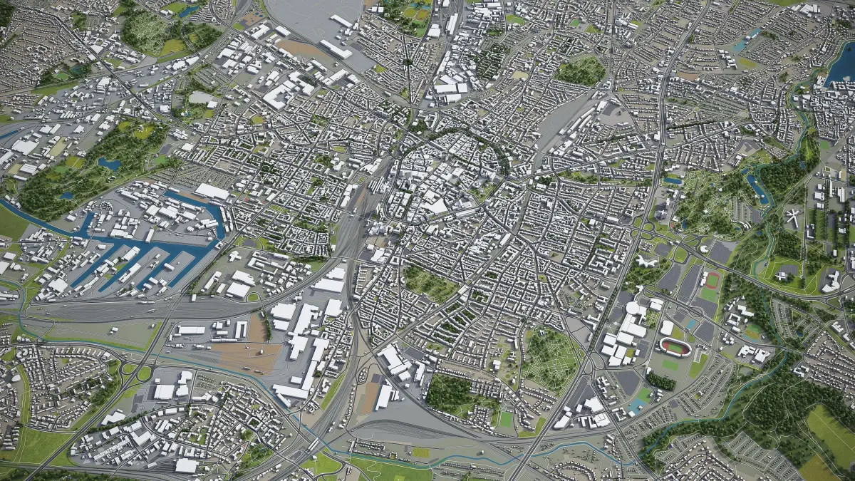 - Full city extents up to 100 x 100 km — or crop to an area of interest for better format compability and scene performance