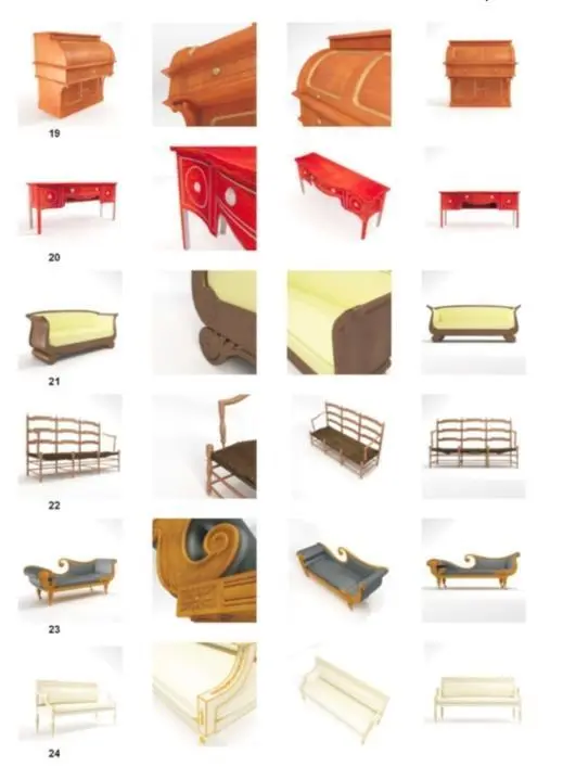 The product DOSCH 3D: Antique Furniture contains 50 very detailed and fully textured 3D-models of various antique furniture pieces. Featured styles range from baroque to neo-classic to rustic.