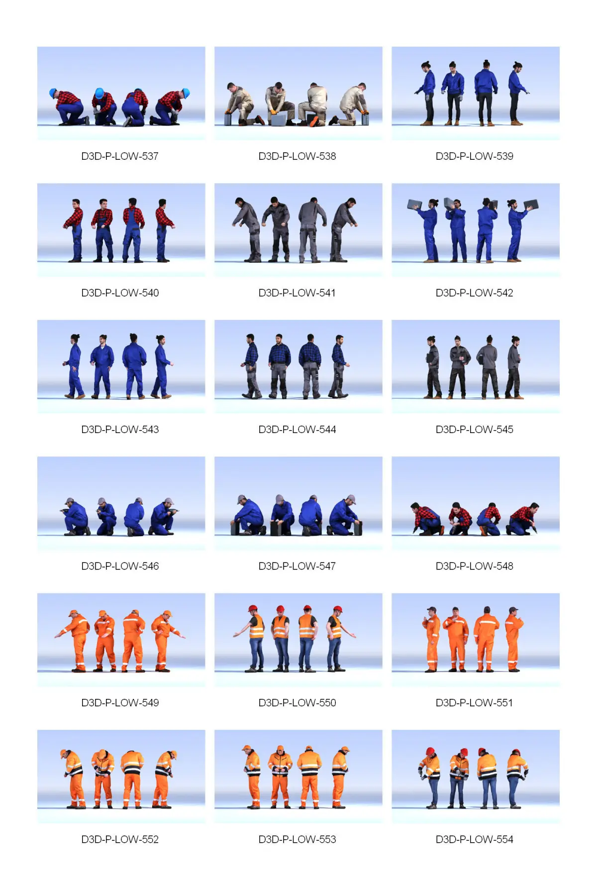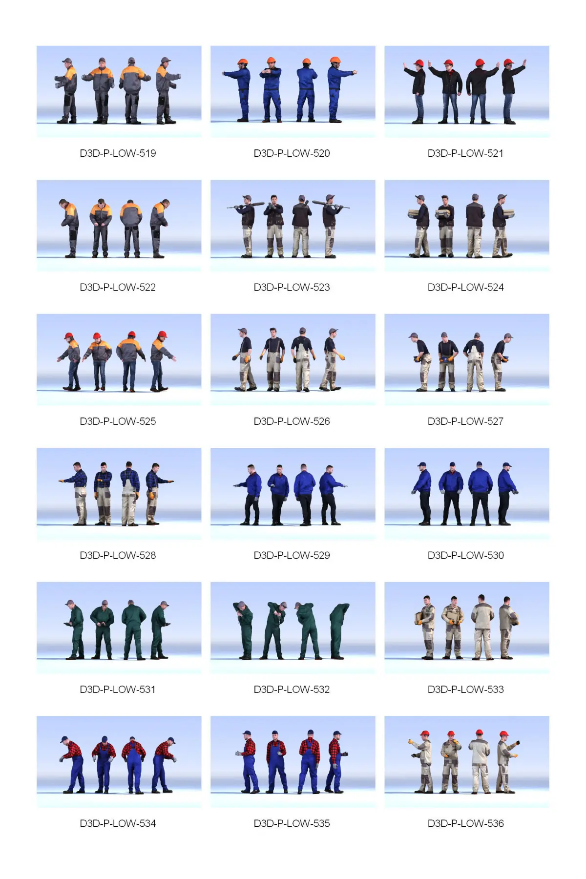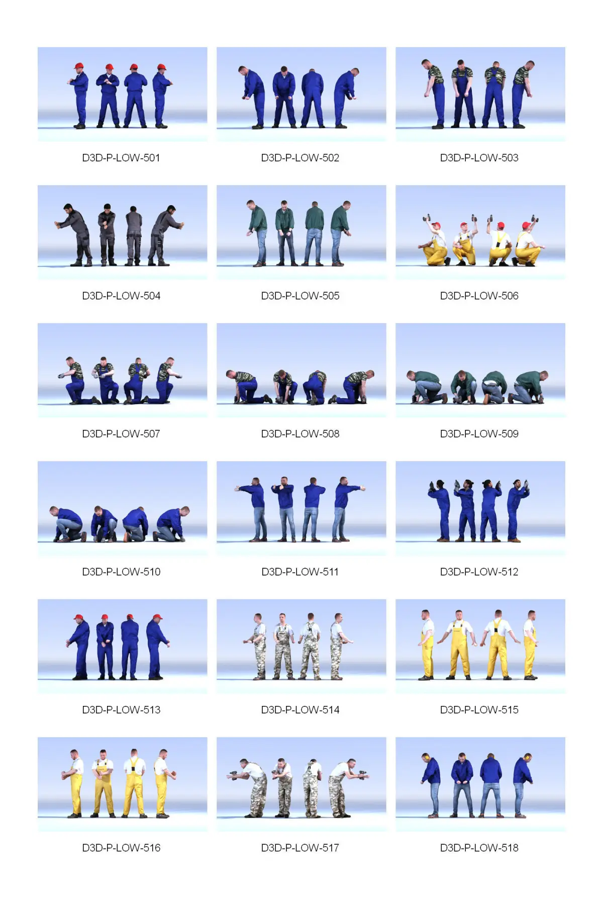 The product DOSCH 3D: Lo-Poly People Vol. 6 contains 100 fully textured lo-poly 3D-models (10,000 polygons per 3D-model) of photo-real people in various poses.