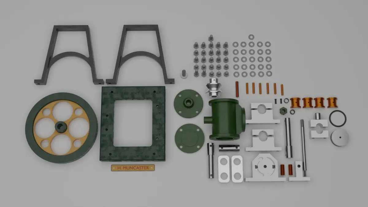 This Muncaster Steam Engine is made from drawings and the scale is 10:1. You can use it to try your skills of animation of mechanical products.