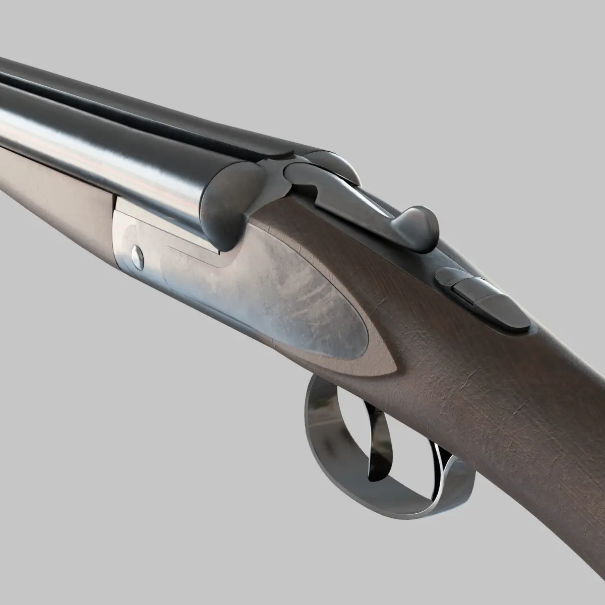 A Double Barreled Shotgun.The model is originally made in Blender and supports subdivision surfaces; FBX format is provided in standard and No Subdivision version with lower polygons count.PBR materials with 4096x4096 pixels texture maps.Unit of measure: millimeters (real-world scale).
