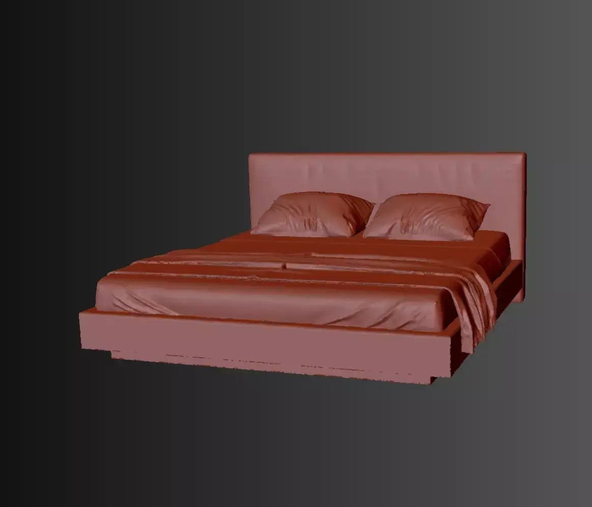 Double bed with mattress, pillow, blanket and bedspread suitable for construction projects and even animation programs or 3D printers.