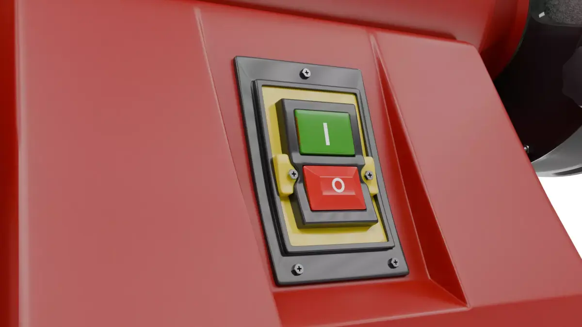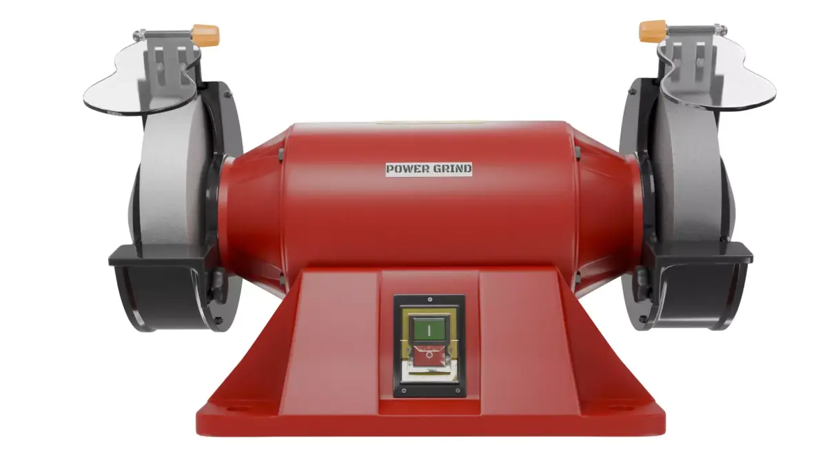 This is a highly detailed 3D model of a bench grinder, inspired by a professional 900W workshop grinding machine with dual grinding wheels (200 mm). The model was created with a strong focus on realism, accuracy, and visual quality, making it suitable for close-up renders, product visualizations, animations, and high-end scenes.