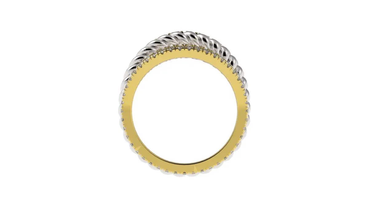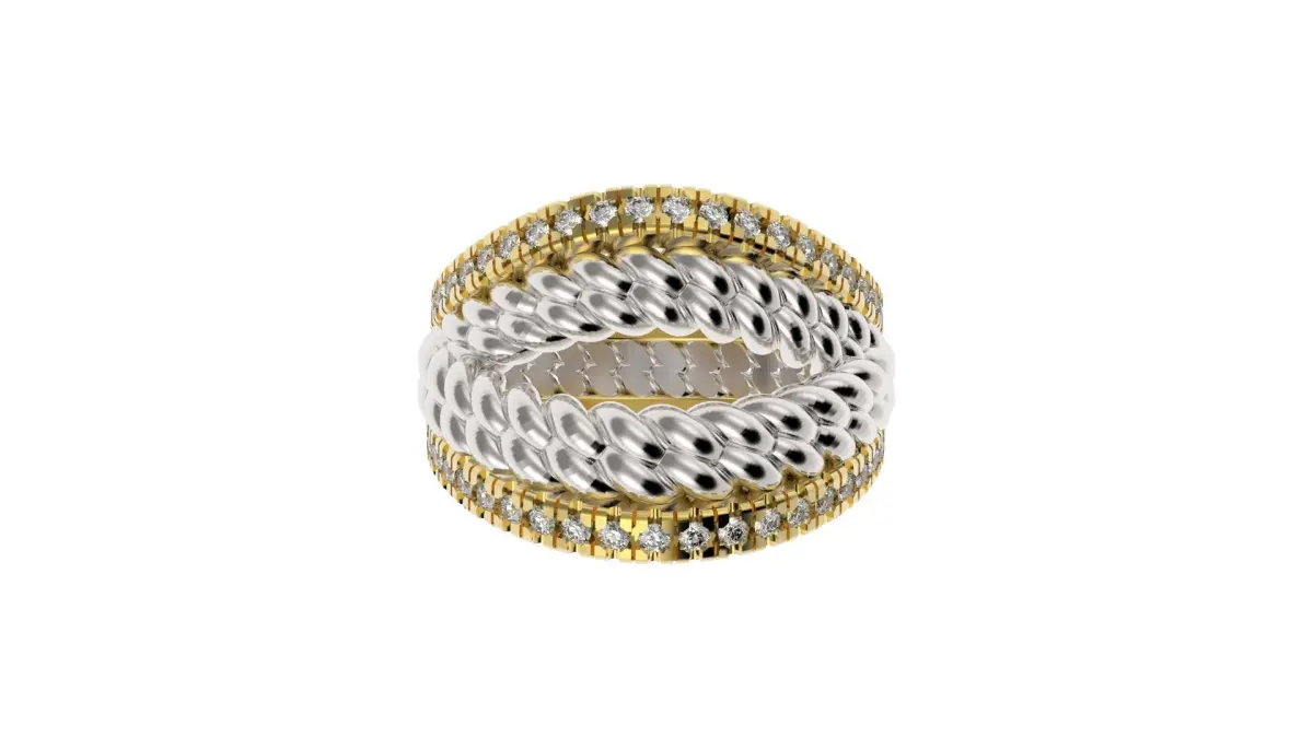 Design of double braid ring and fishtail mount with 90 round cut gemstones of 1 mm diameter, ready for 3D printing and later casting in precious metals such as gold, silver, platinum, etc.If you require a special design, please contact us at the following email di.galileo.am@gmail.com