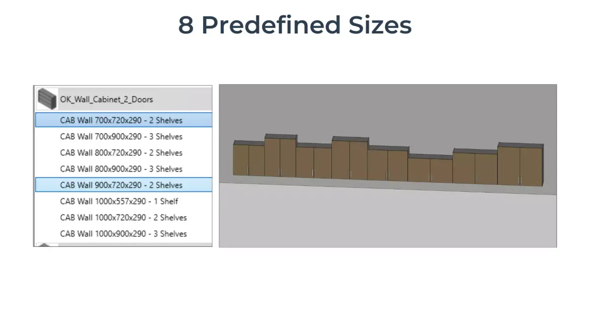 Fully parametric Revit family for a double-door wall cabinet, built to UK standards and ready for residential interiors.