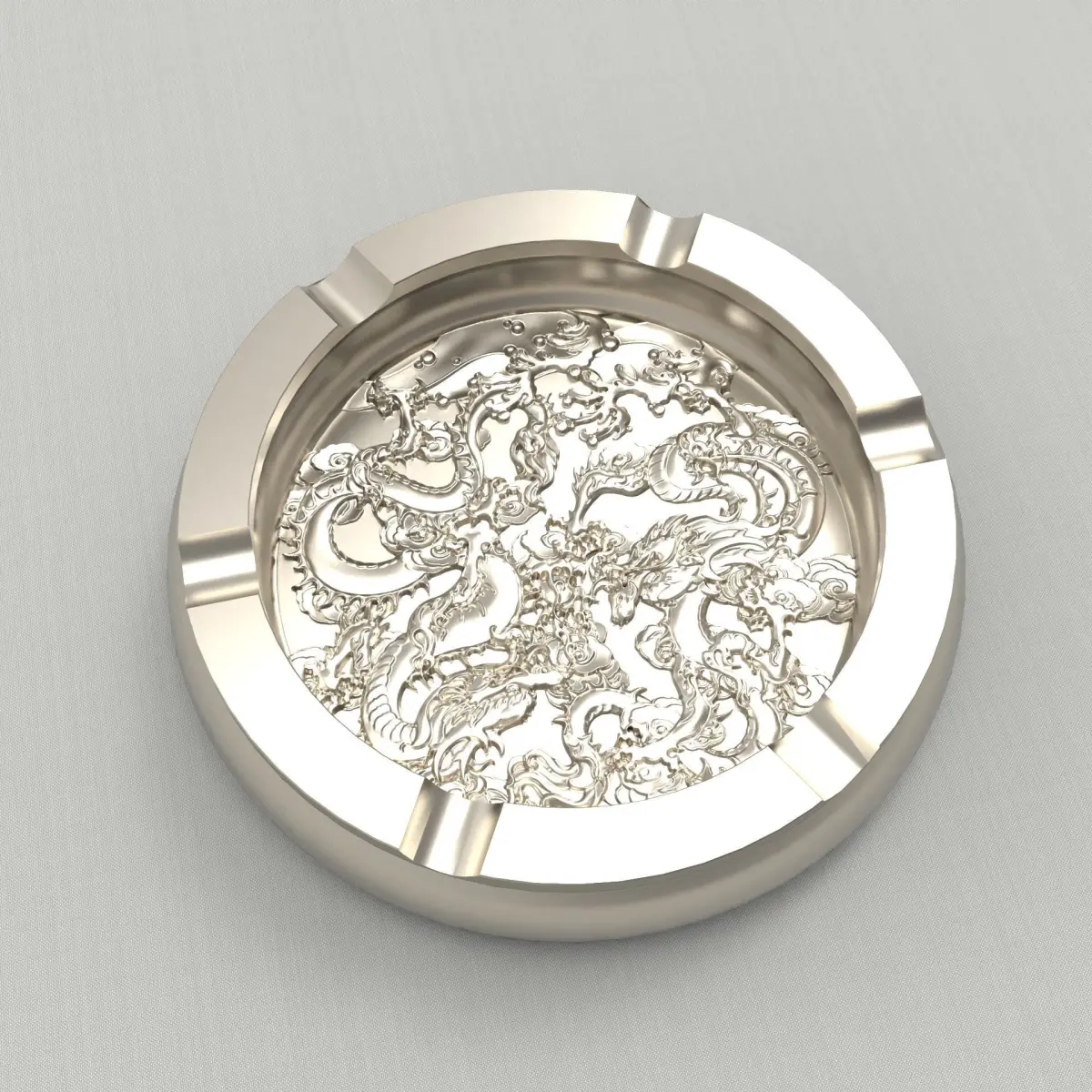 This is an ashtray with a double dragon pattern relief at the bottom. The modeling software is zbrush2021 and Maya2018, with attachments containing various formats, among which stl files can be used for 3D printing.The double dragon relief is made through zbrush, and the main body of the ashtray is made through Maya. Interested friends are welcome to download.