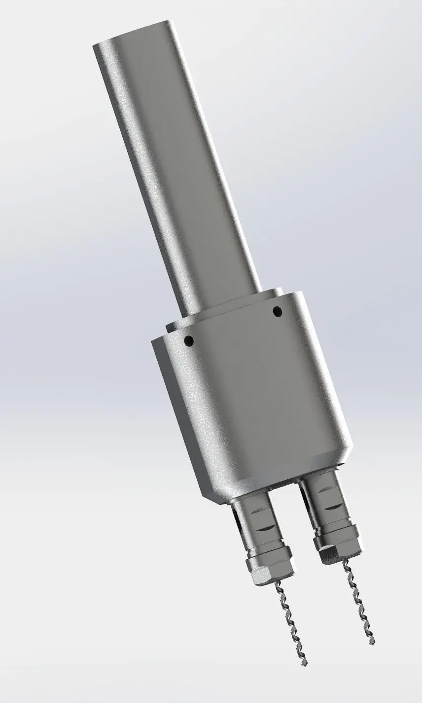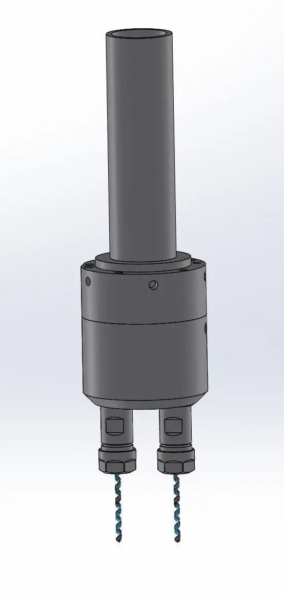Single bit to double bit mechanism, the mechanism is a conversion head fixture, through the gear mechanism of the single bit, into a double bit mechanism