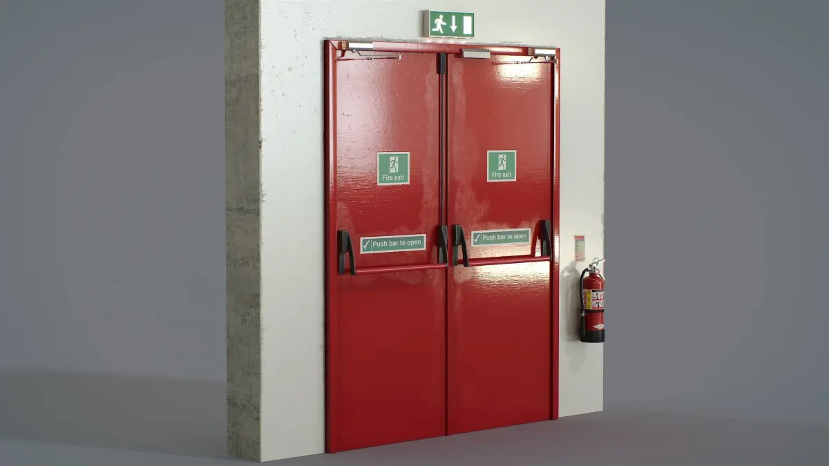 This 3d model Double Fire Exit Doors Red has a fully textured, detailed design that allows for close-up realistic renders.