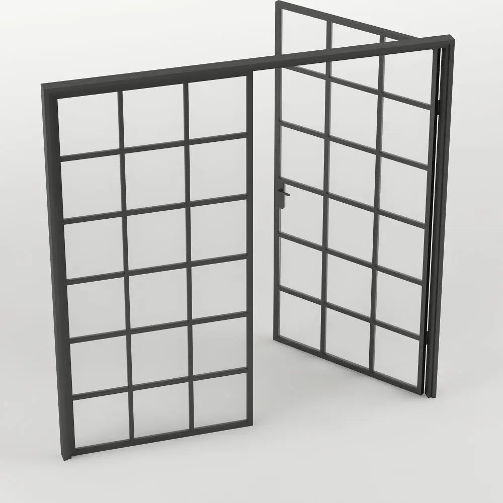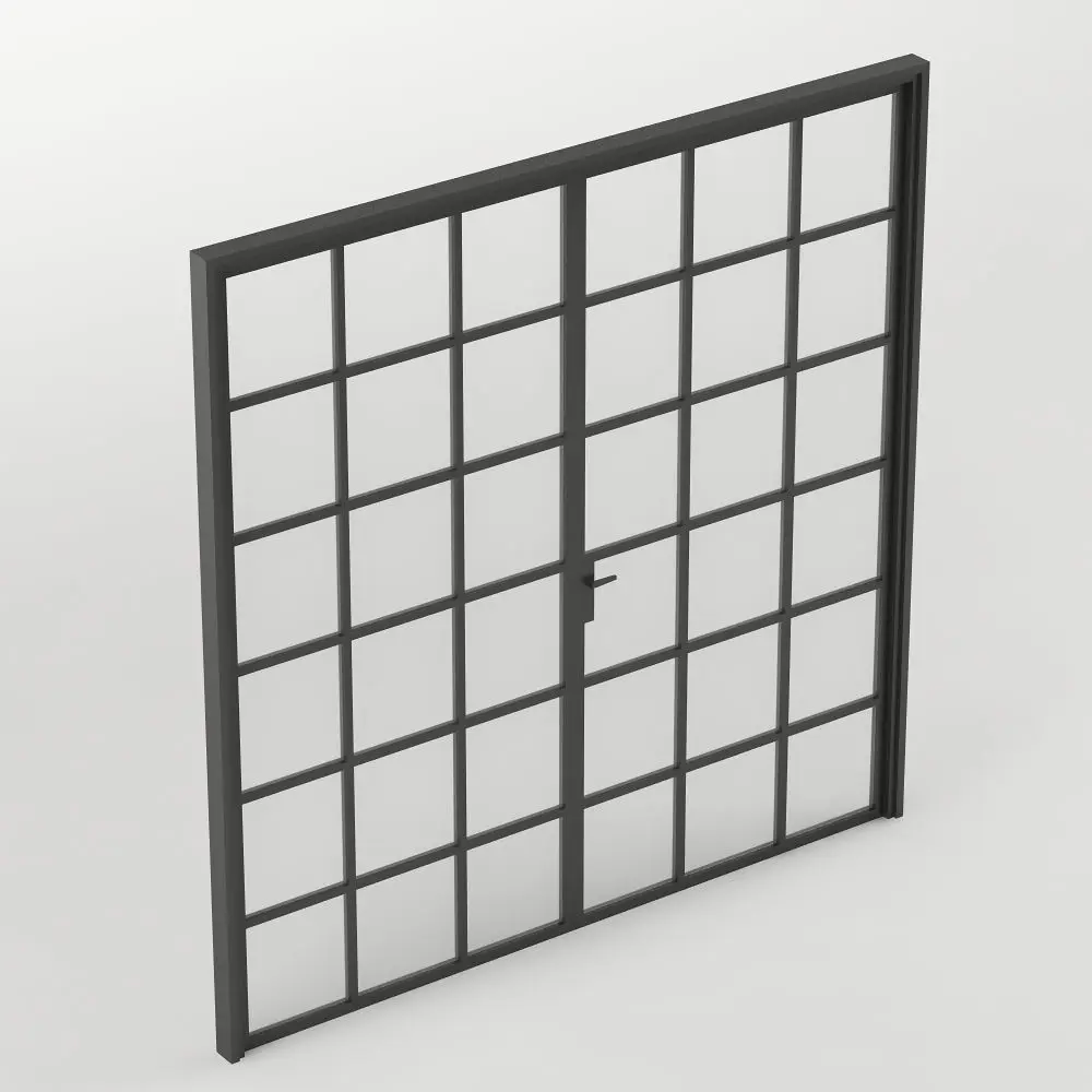 Double Glass Door with rectangular 36 squares Low-poly 3D model