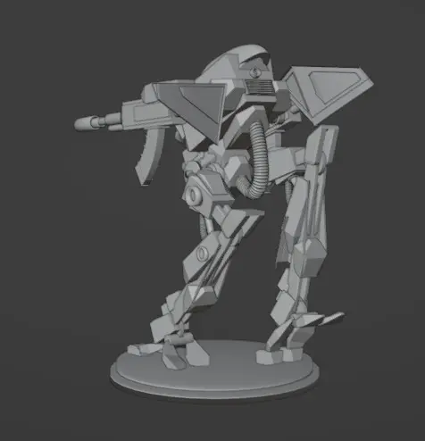 The mech warrior stands tall, a towering behemoth of steel and firepower. Its sleek, angular frame is a blend of cutting-edge technology and raw military might. In each of its massive, powerful hands, it wields a pair of AK-47 style assault rifles, customized to fit the massive size of the mech. The rifles are robust, their cold metal gleaming with a menacing sheen, each barrel designed to unleash a storm of high-velocity rounds with relentless precision. The mech’s targeting systems are finely tuned, allowing the warrior to track multiple enemies simultaneously, while its heavily armored body can withstand an impressive amount of damage. With every movement, the mech exudes an aura of dominance, ready to rain destruction on any adversary that dares to challenge its might. The combination of advanced robotics and raw firepower makes this mech a formidable force on the battlefield, capable of mowing down enemies with ruthless efficiency.