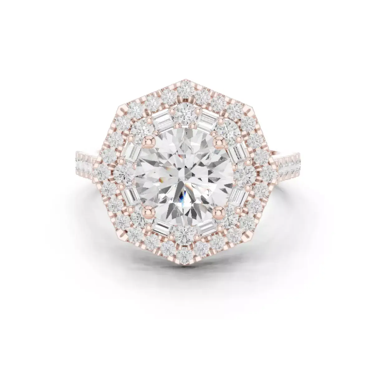 This luxurious double halo engagement ring 3D model features a brilliant round center stone surrounded by two perfectly proportioned halo layers, creating exceptional depth, sparkle, and visual impact. The multi-level halo structure adds a strong premium character to the design, making it ideal for high-end bridal collections and statement engagement jewellery.