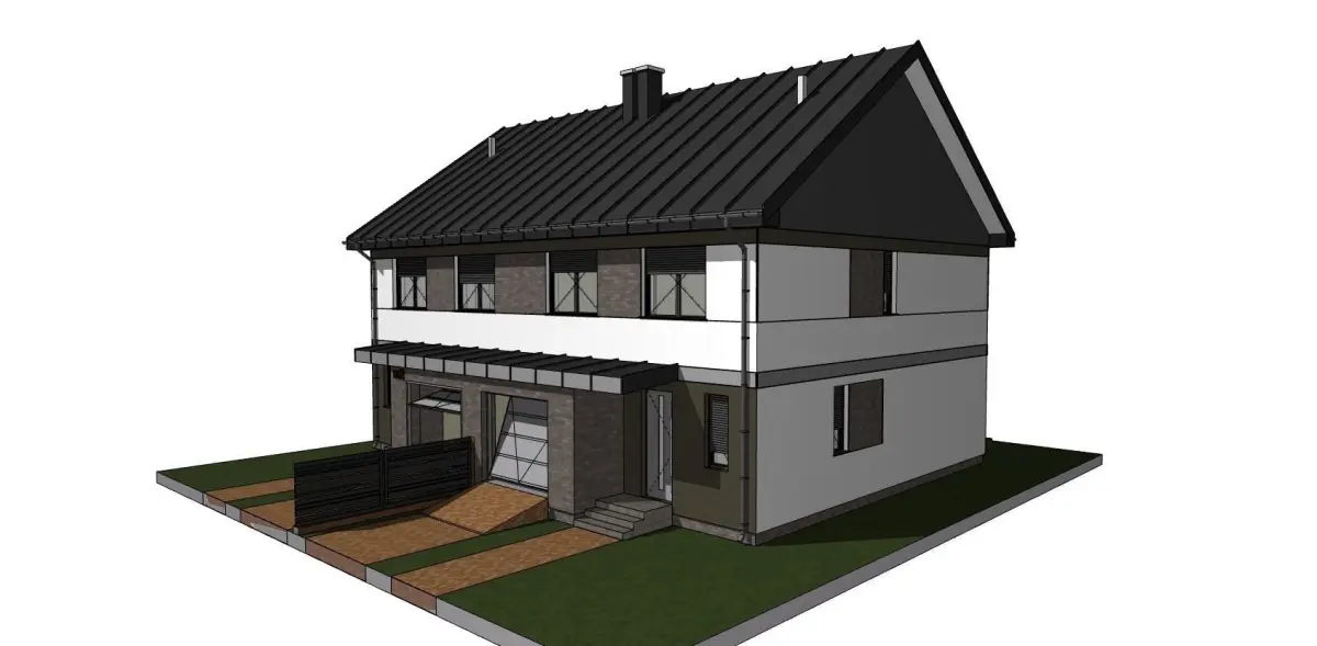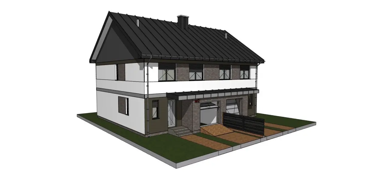 A model of a double house with a gable roof and a terrace, garage. The model was made for visualization in programs such as twinmotion or lumion, blender or other. It is a model of an existing home, not a fantasy.