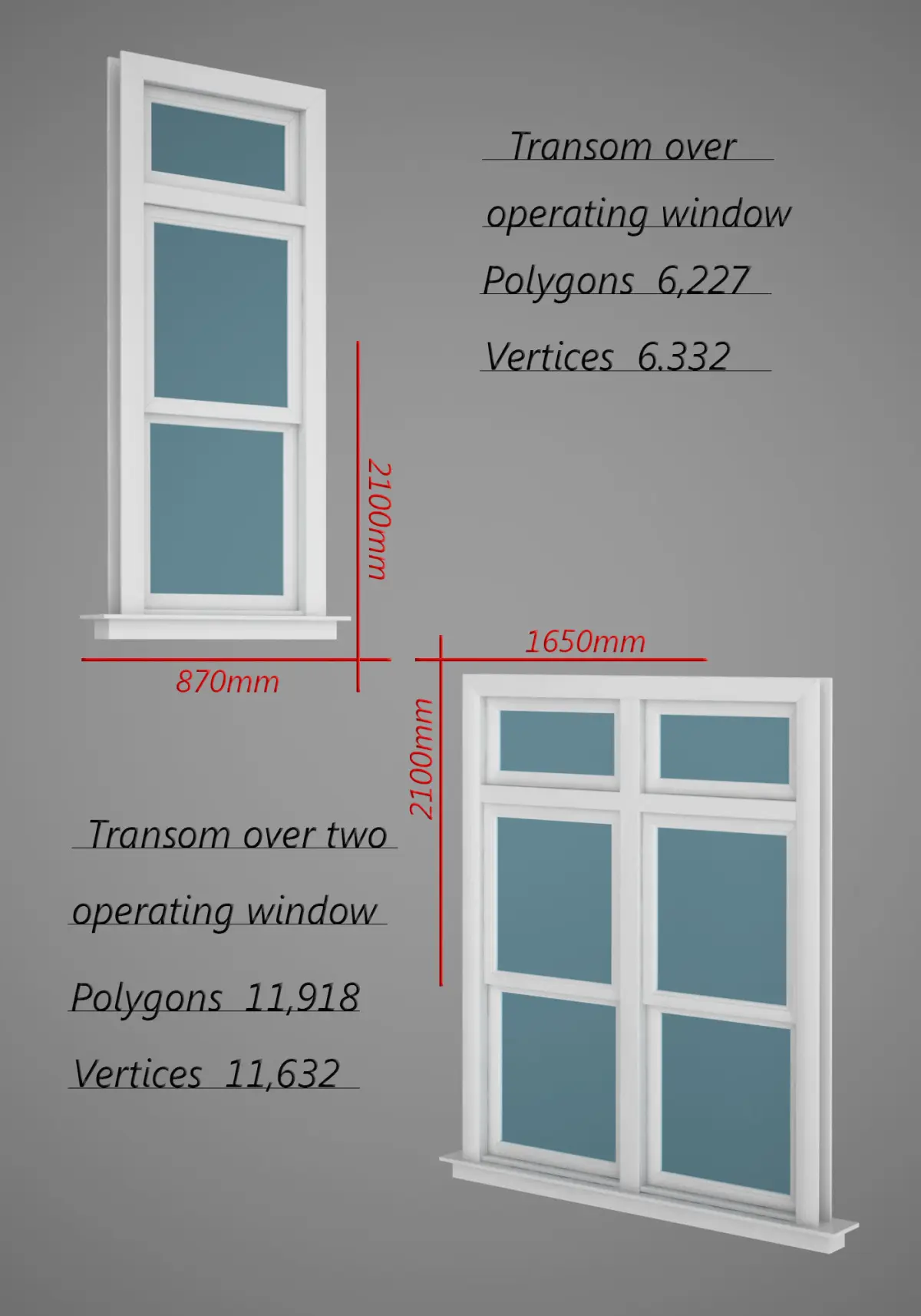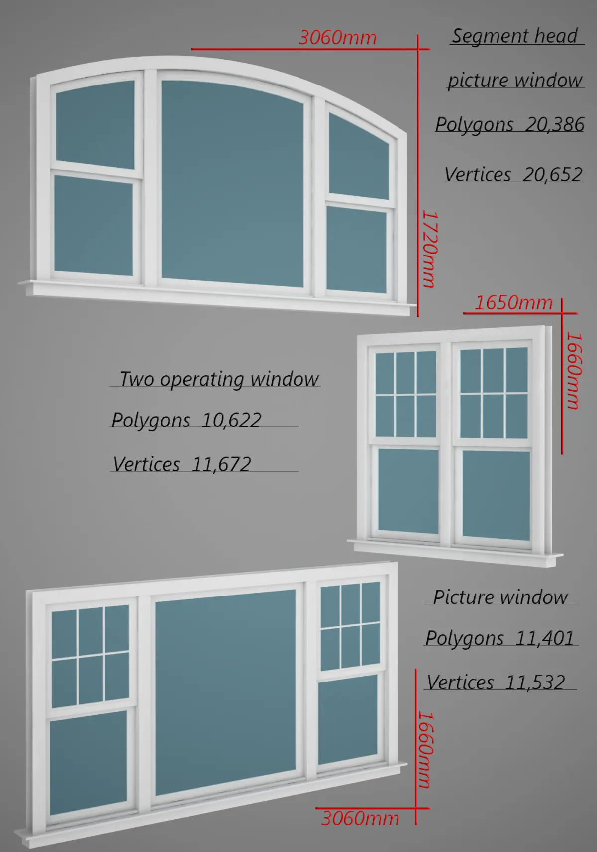 Made in cinema 4d. Material VRay C4D 1.9.Unit used: millimeters. This is real-size model of window.