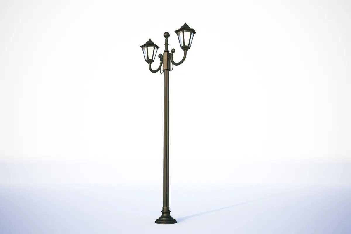 This realistic model includes classic double street lamp. Stylized to the older street lightning.Model prepared for 3d architectural visualisations and other graphic works.