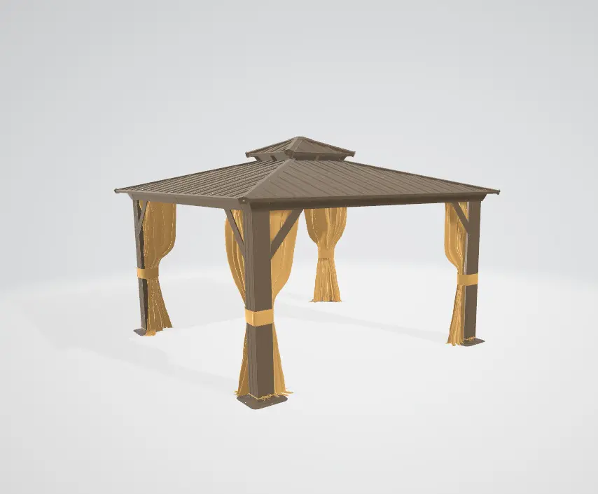 YOLENY 10' x 10' Aluminum Frame Gazebo, Galvanized Steel Double-Roof Gazebo with Curtain and Netting, Outdoor Metal Pergolas