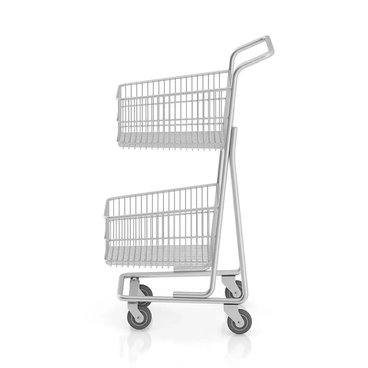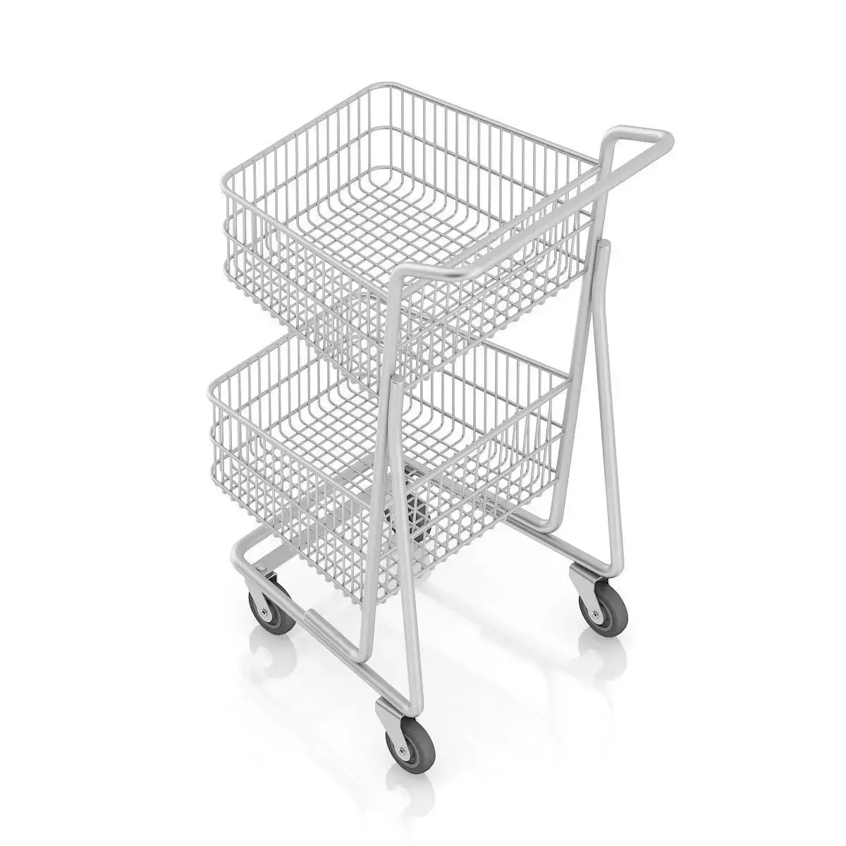 3d model of two-level metal shopping cart. Compatible with 3ds max 2010 or higher and many others.
