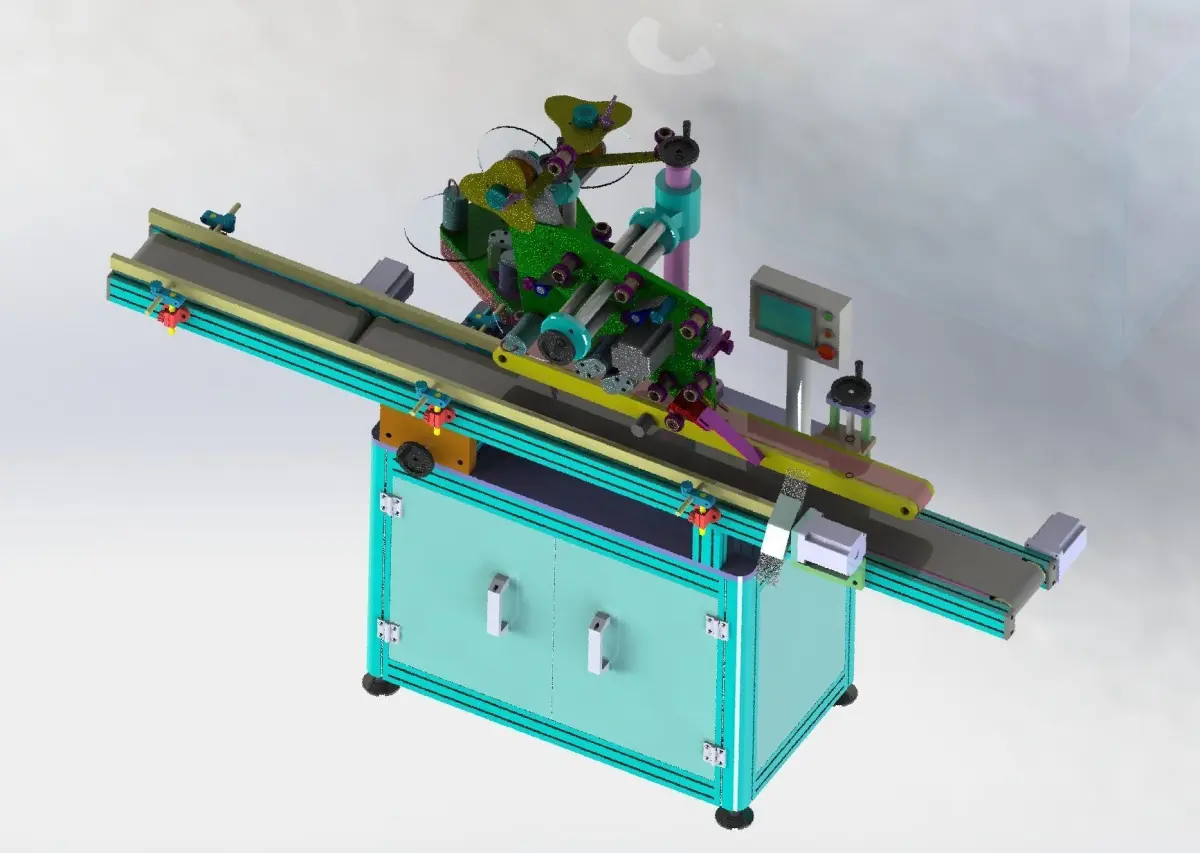 Double-sided labeling machine, which can be used for double-sided labeling or film on the front and side, can be made at 90 angles on both sides, and the mechanism includes