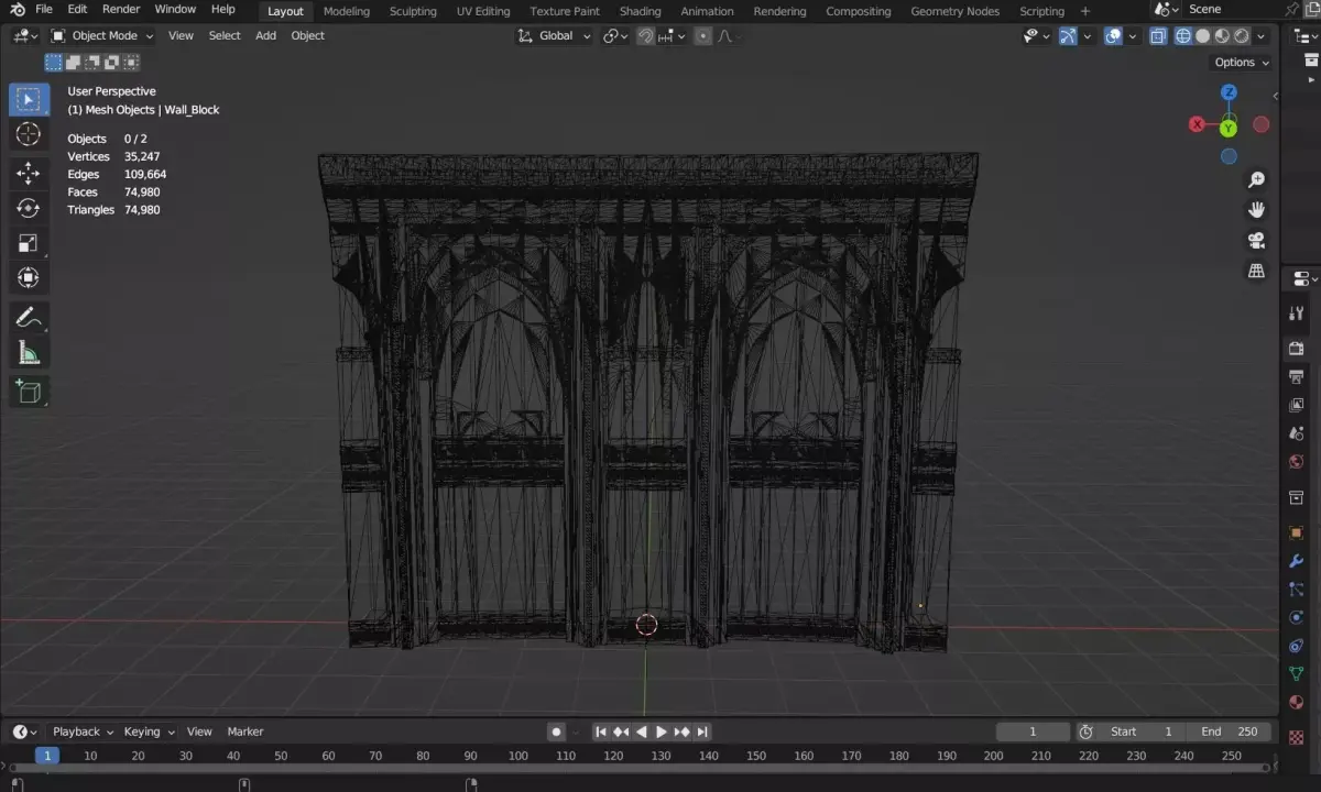 This is a high quality double sided arc wall modular architecture model designed as a seamless block, allowing the wall to be duplicated without any visible repetition or seams. The model was initially created in SketchUp with precise proportions and full geometry details, then imported into Blender where it was completed using physically based PBR textures for realistic material definition.