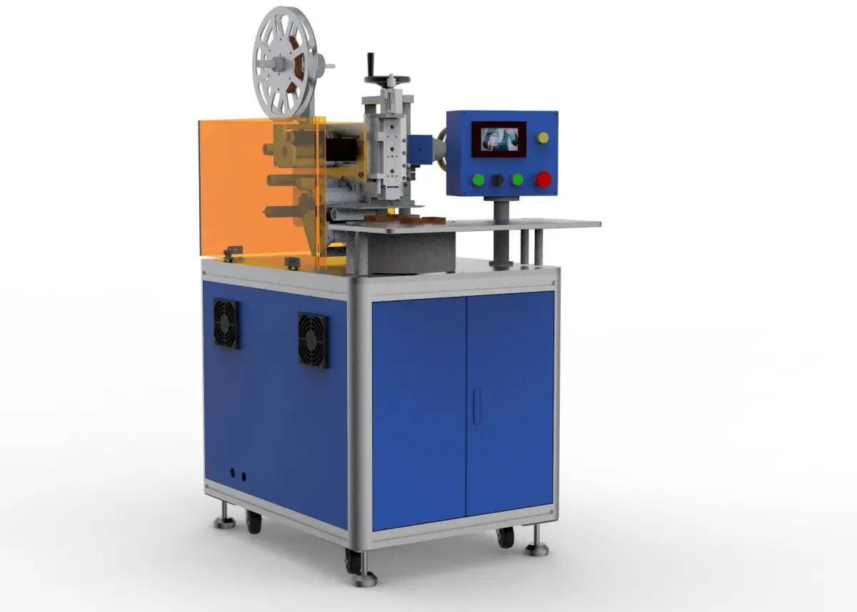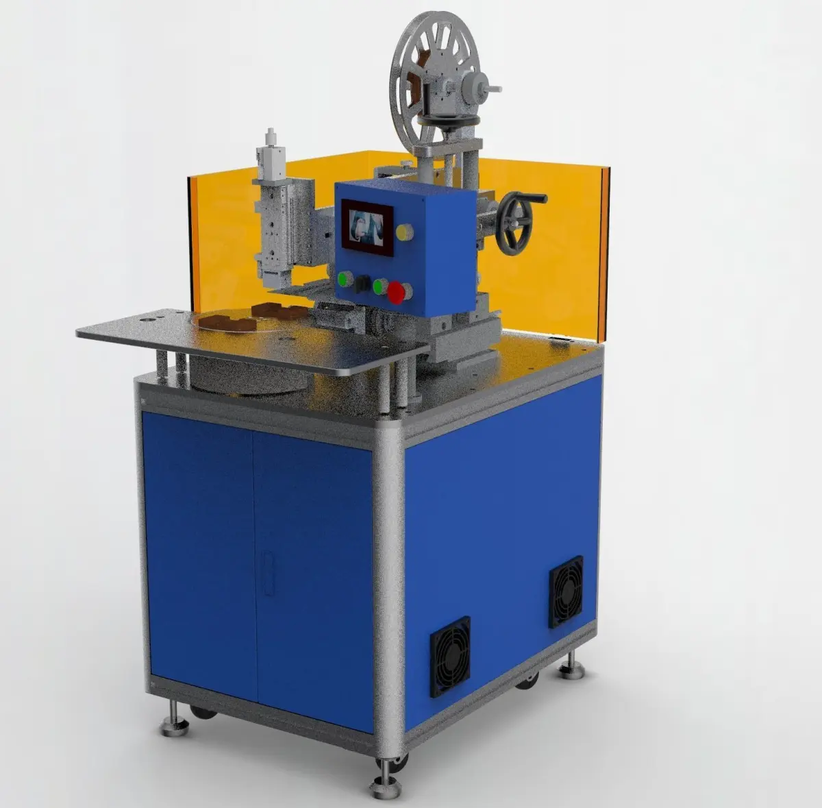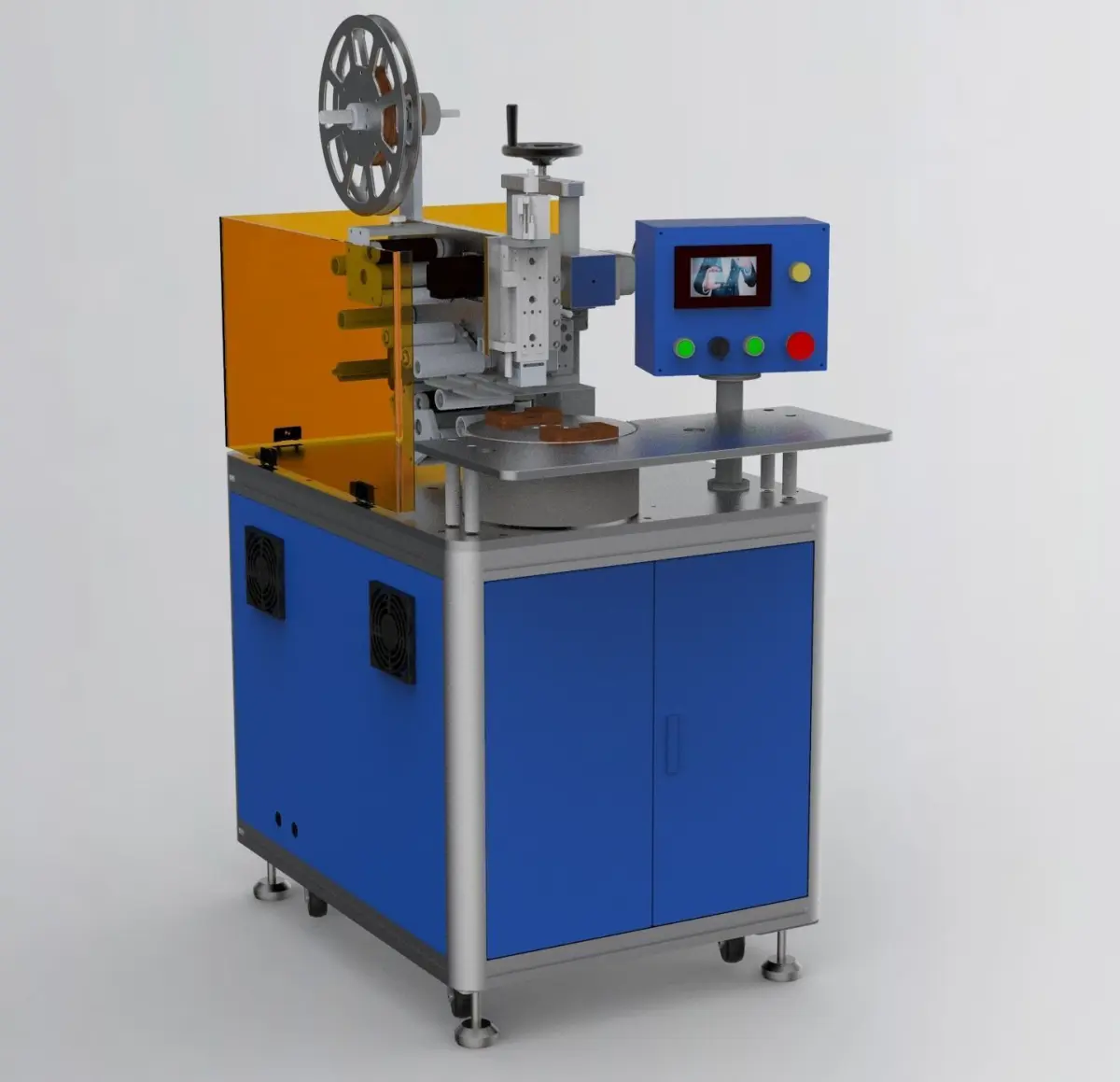 The machine is the film sticking equipment for the product indication. It can put the product into the fixture, wash the hair and vacuum the diaphragm, then carry out the film sticking. It can be used in the product of release film with high precision