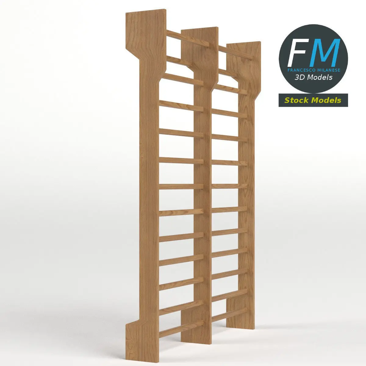 Double Swedish ladder (gymnastic wall bars) 3D Model. Production-ready 3D Model, with PBR materials, textures, non overlapping UV Layout map provided in the package.