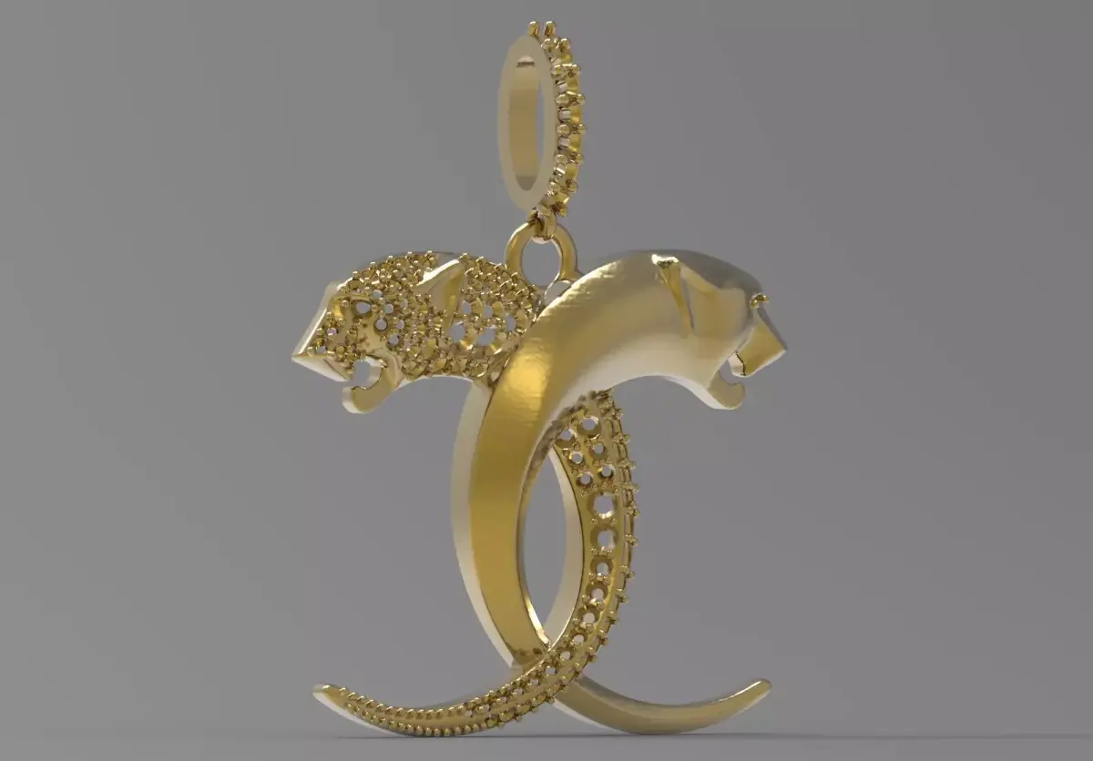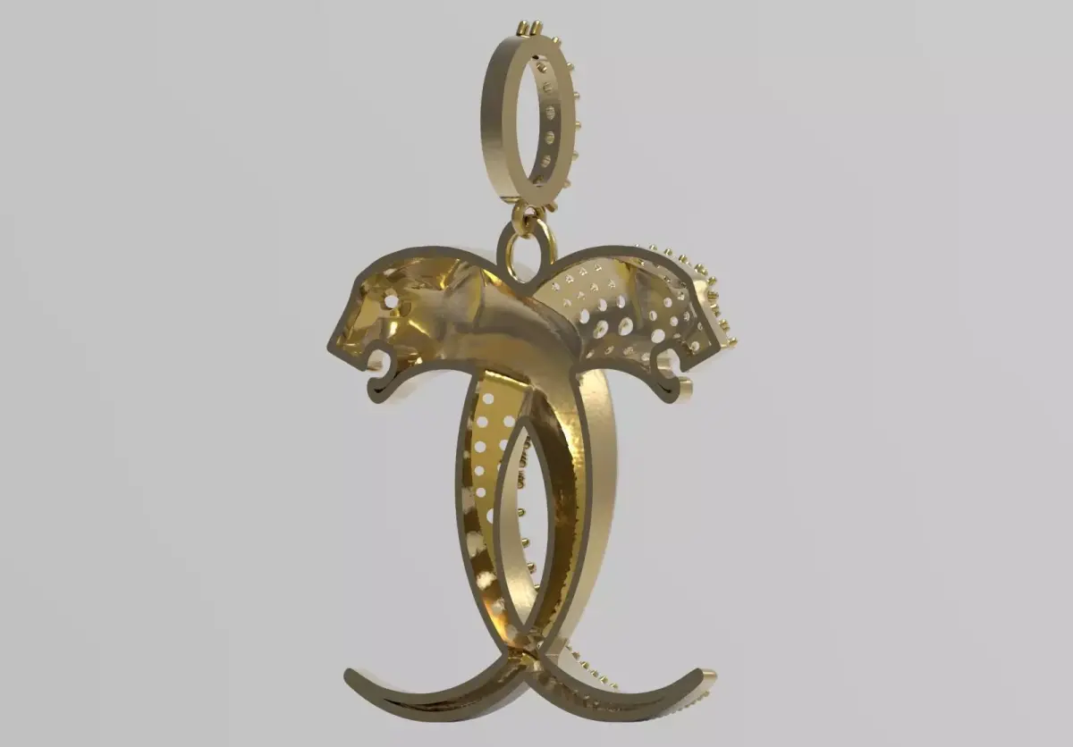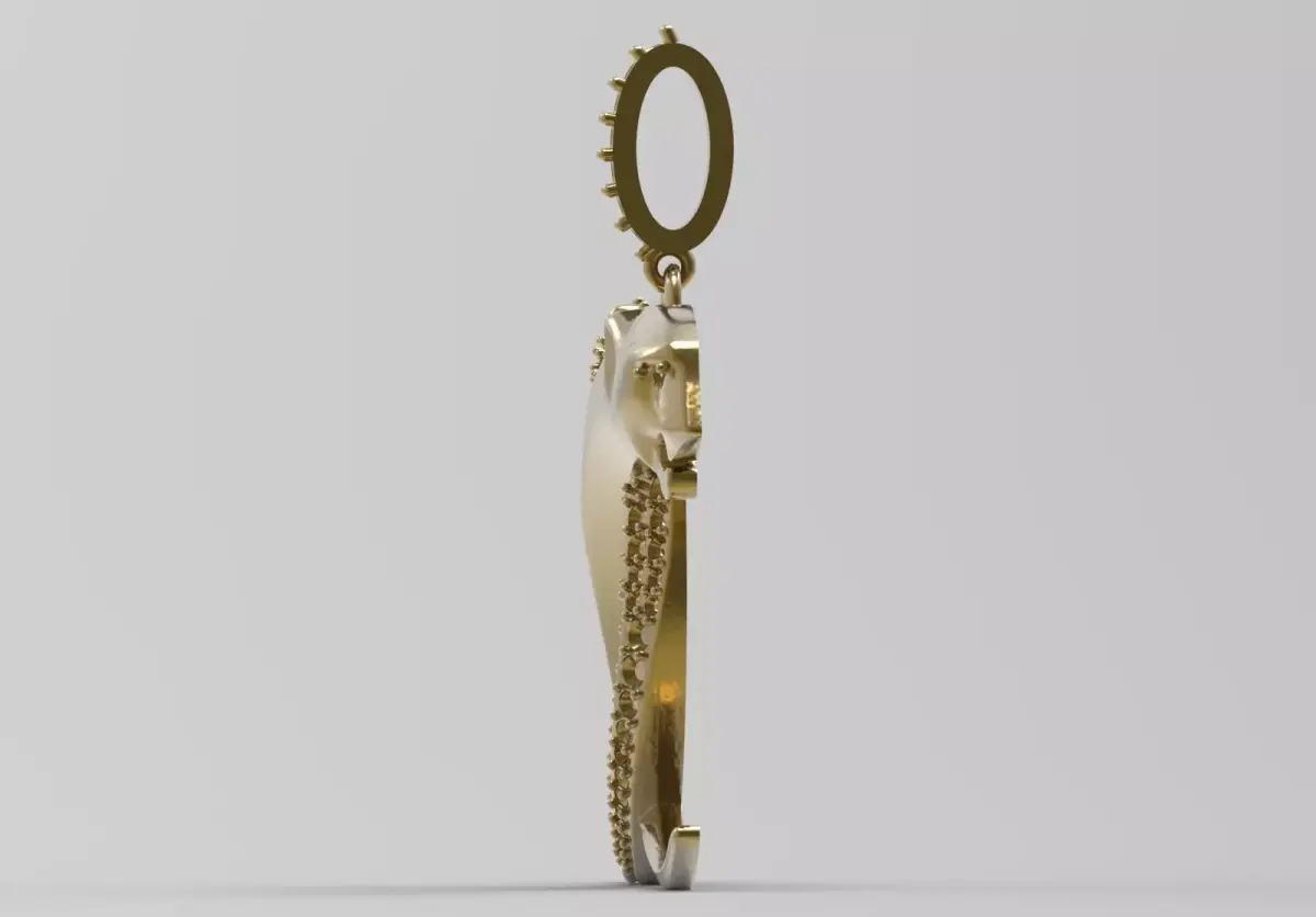 - Jeweled Tiger: The left side of the pendant, including the tiger head and the lower curved body, is designed as Lattice and ready for Pavé Setting. The entire surface of this part is covered with holes for installing small round gems.