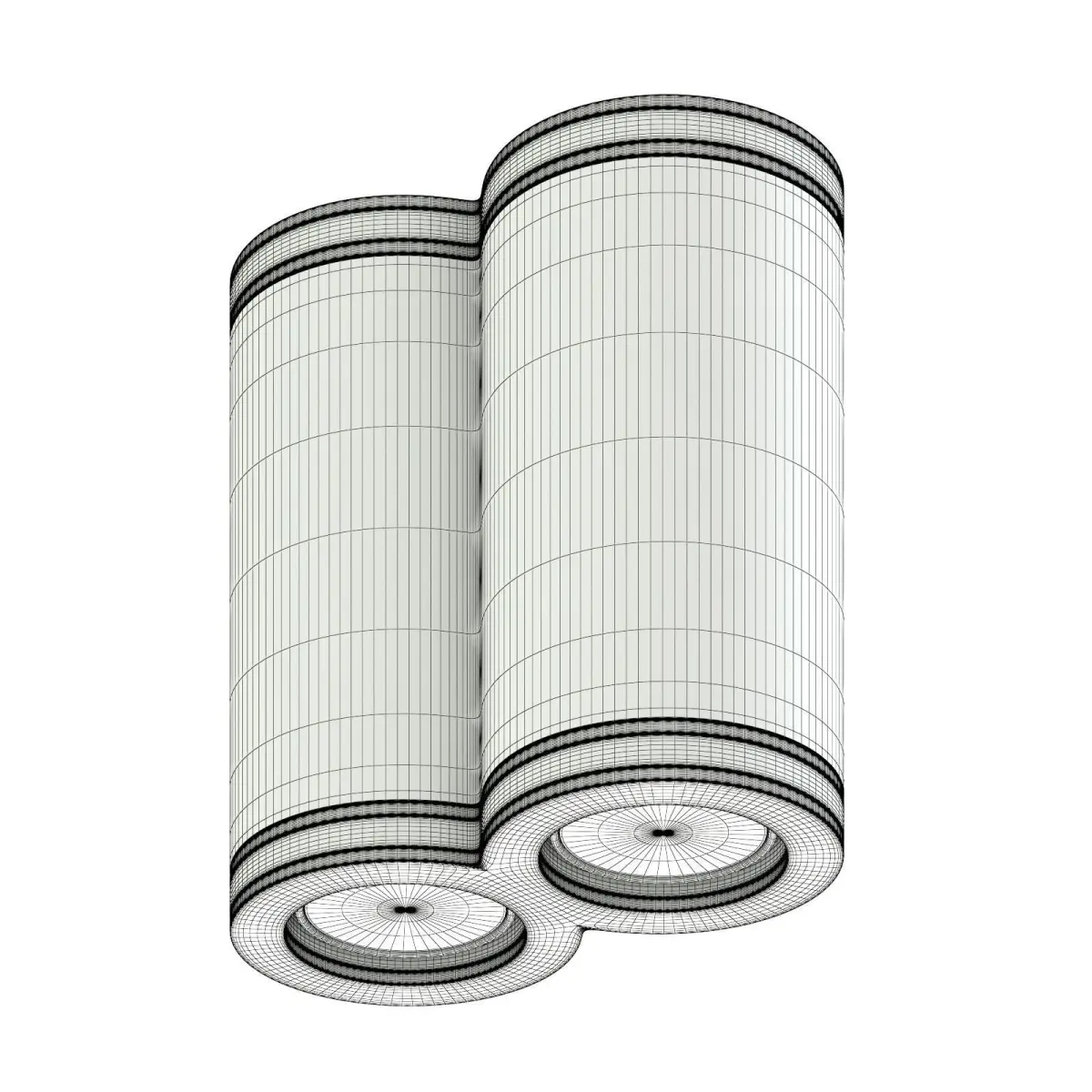 Double white cylindrical light 3d model. Compatible with 3ds max 2010 (V-Ray, Mental Ray, Corona) or higher, Cinema 4D R15 (V-Ray, Advanced Renderer), Unreal Engine, FBX and OBJ.