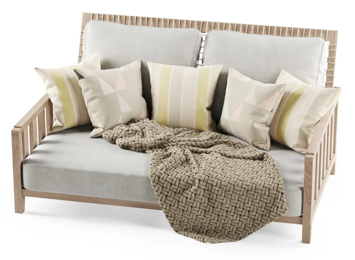 HomeCatalogDouble wooden garden sofa with plaid 3D model