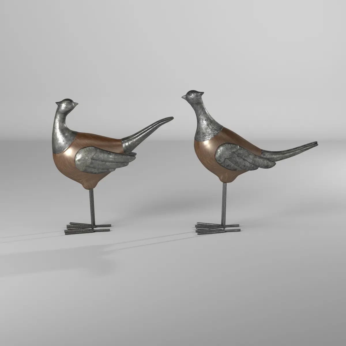 Doughty Polystone Metal Pheasant Figurine Set Low-poly 3D model